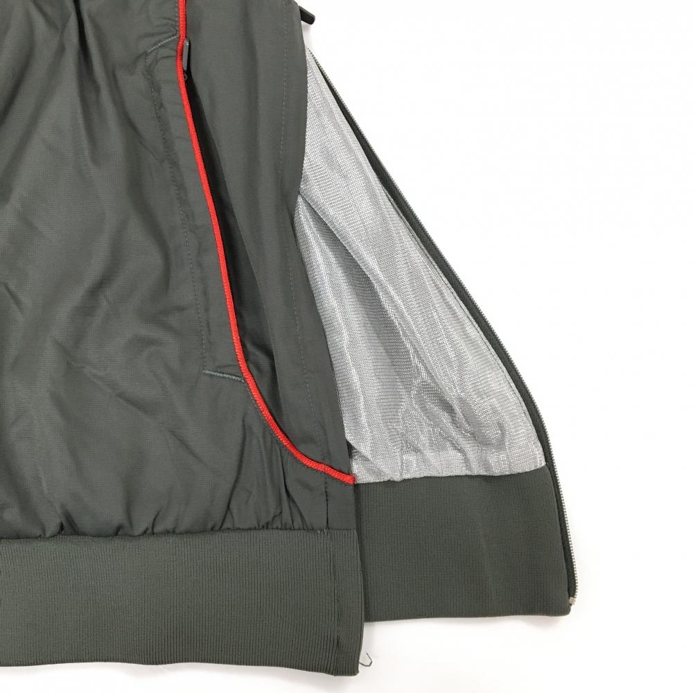 【美品】パーリーゲイツ ブルゾン カーキ×レッド ハーフジップ 蓄熱裏地 ロゴ レディース 2(L) ゴルフウェア PEARLY GATES