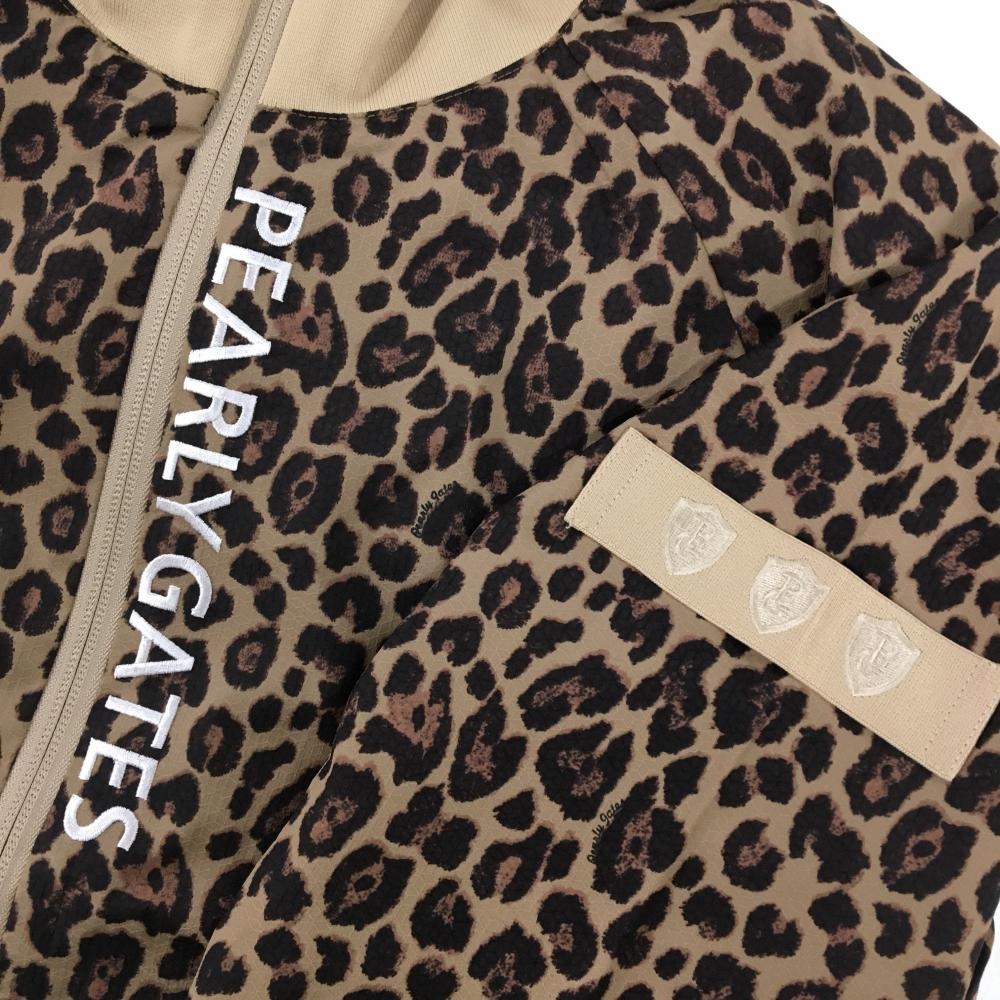 【新品】パーリーゲイツ ジャケットブルゾン ベージュ×ダークブラウン レオパード柄 ロゴ白 レディース 0(S) ゴルフウェア PEARLY GATES