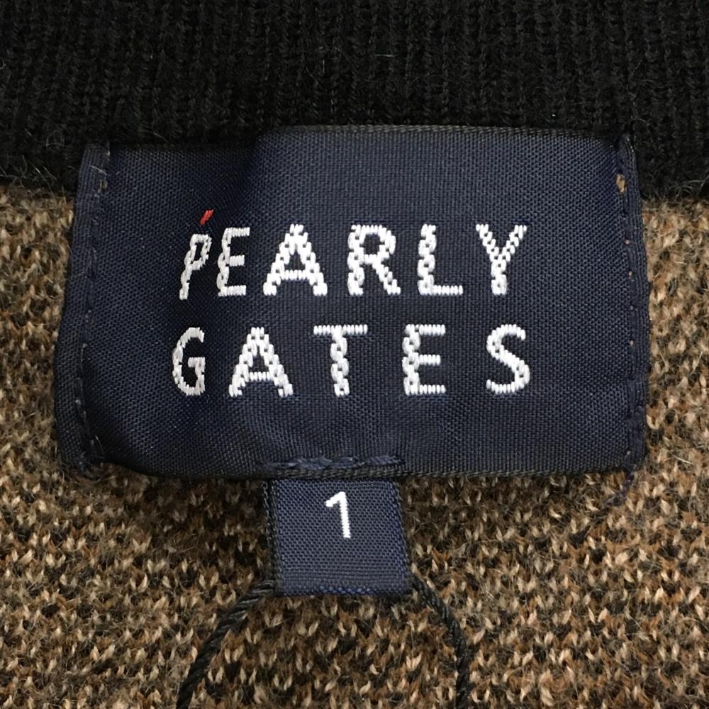 【新品】パーリーゲイツ ニットジャケット リベージュ系×黒 レオパード柄 ロゴ白 カシミヤ混 レディース 1(M) ゴルフウェア PEARLY GATES