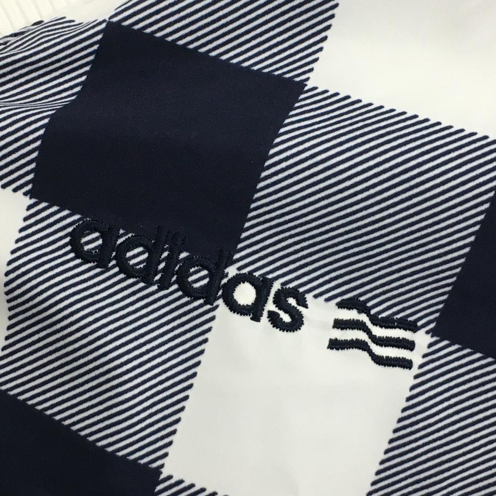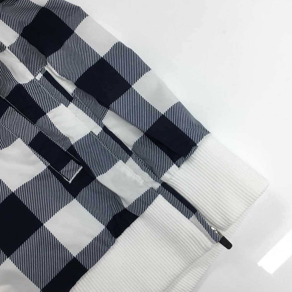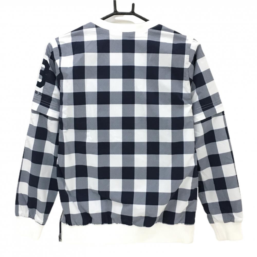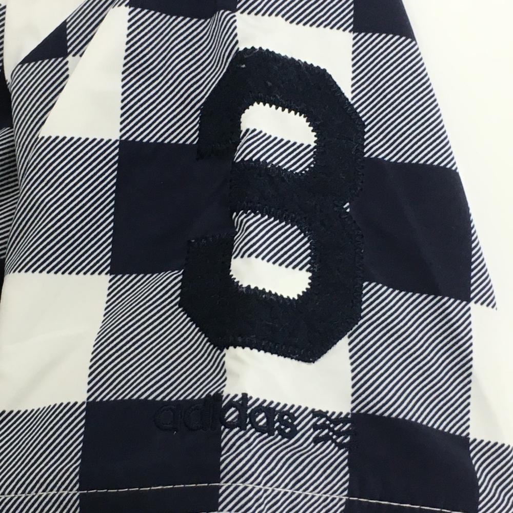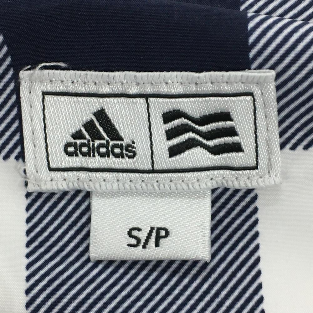 【超美品】アディダス 2WAYスニード 白×ネイビー ブロックチェック 蓄熱裏地 袖着脱可 ブルゾン レディース S/P ゴルフウェア adidas