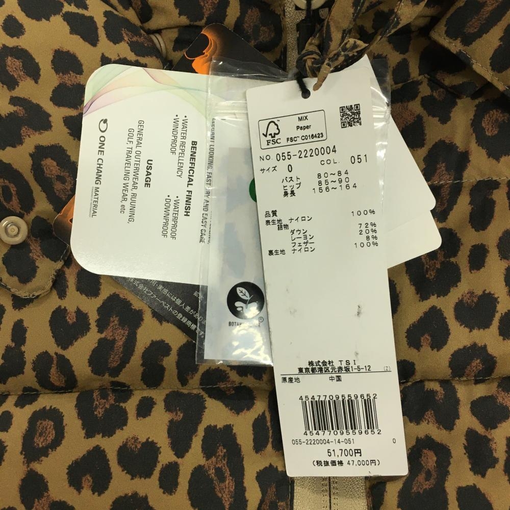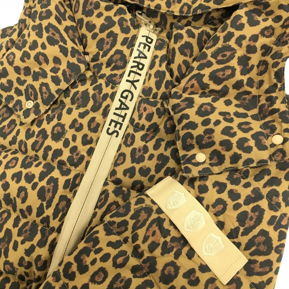 【新品】パーリーゲイツ 4WAYダウンジャケット ライトブラウン×黒 レオパード柄 収納袋付き レディース 0(S) ゴルフウェア PEARLY GATES