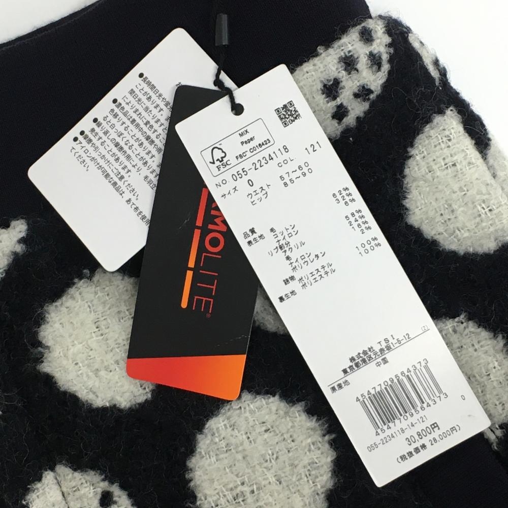 【新品】パーリーゲイツ ウールスカート ダークネイビー×白 ドット柄 ウエストゴム レディース 0(S) ゴルフウェア PEARLY GATES