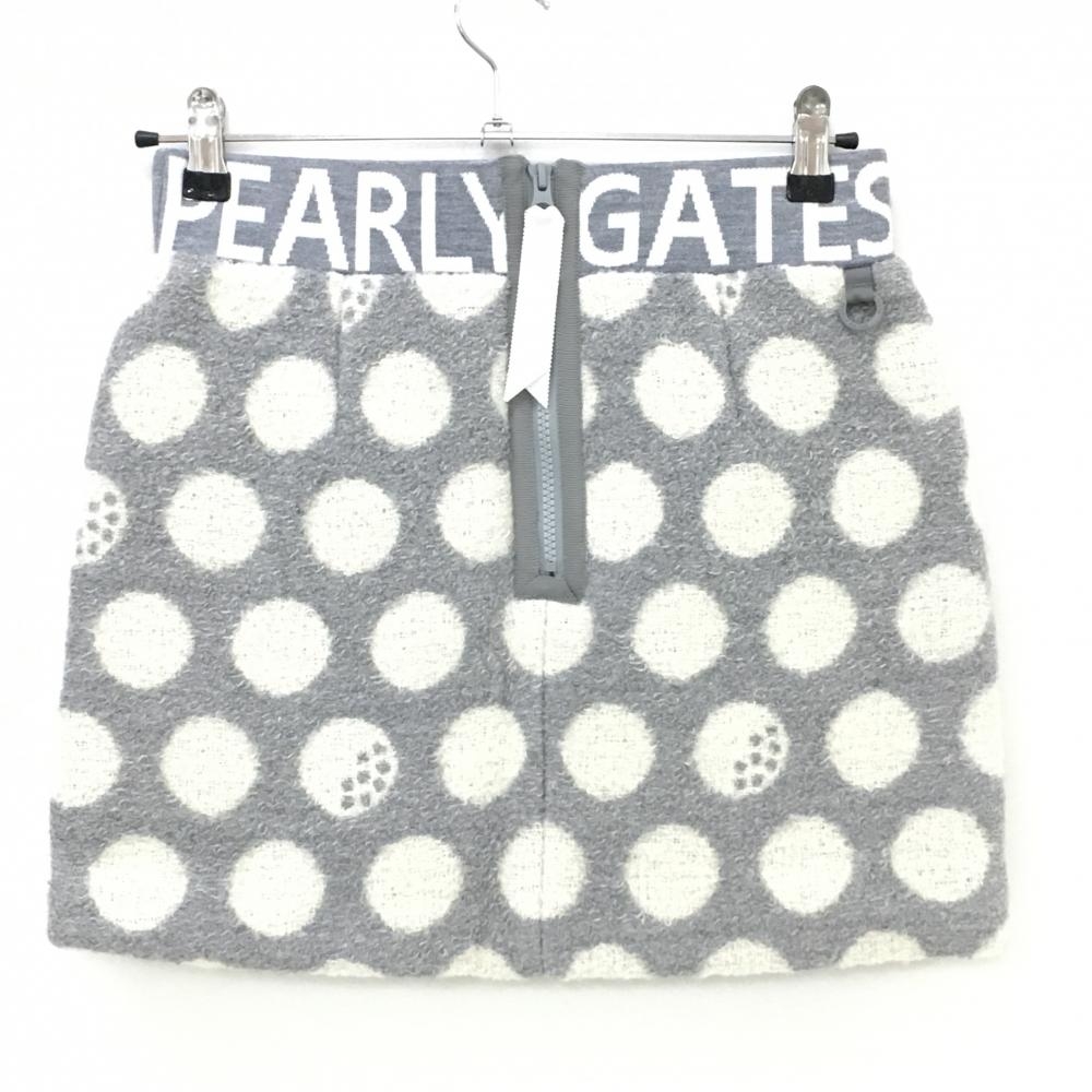 【新品】パーリーゲイツ ウールスカート グレー×白 ドット柄 ウエストゴム レディース 0(S) ゴルフウェア PEARLY GATES