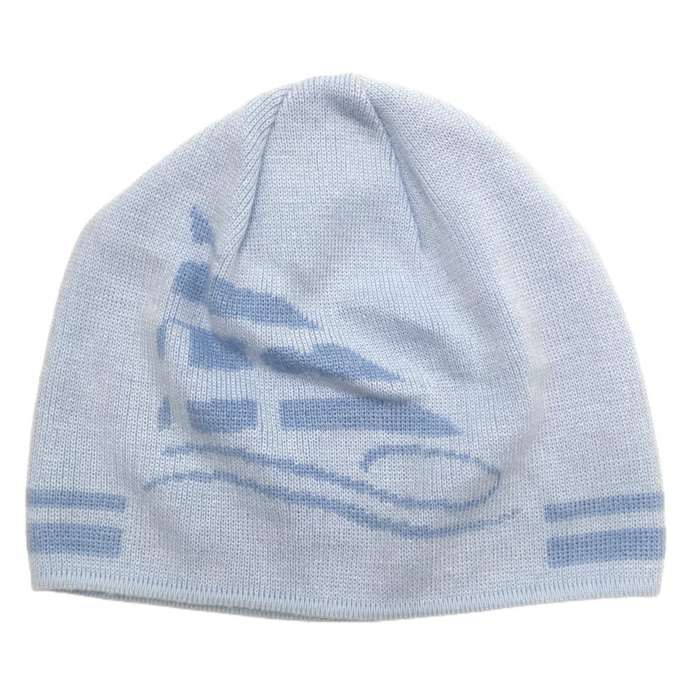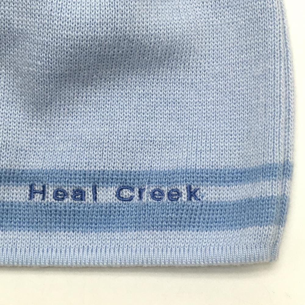 【超美品】ヒールクリーク ニット帽 ライトブルー×ブルー ロゴ刺しゅう 40 ゴルフウェア Heal Creek