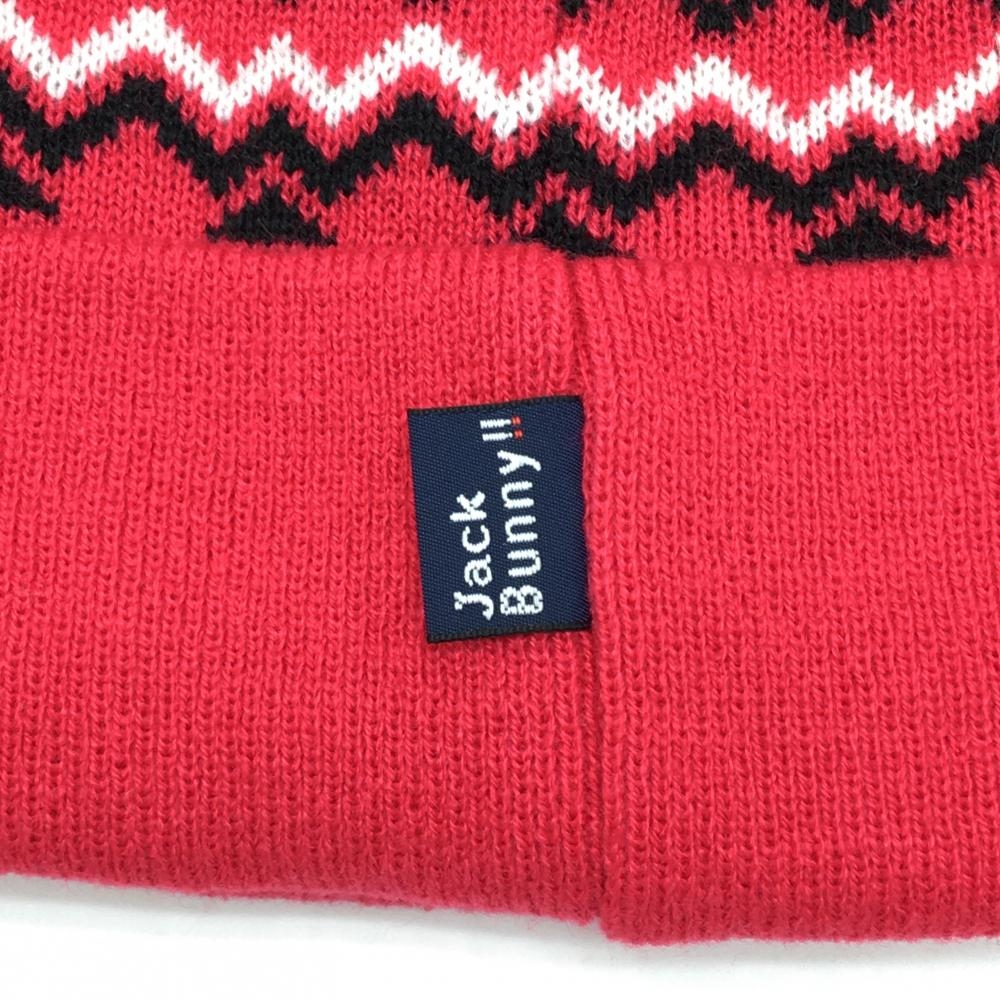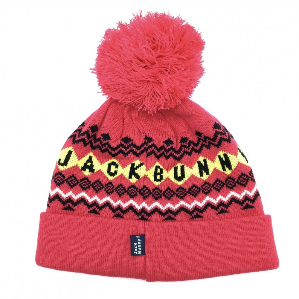 【超美品】ジャックバニー ニット帽 ピンク×白 ボンボン付 内側起毛 FR ゴルフウェア Jack Bunny