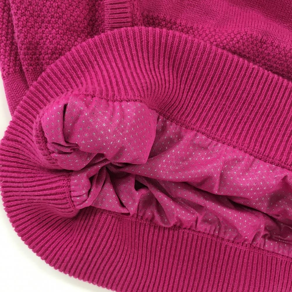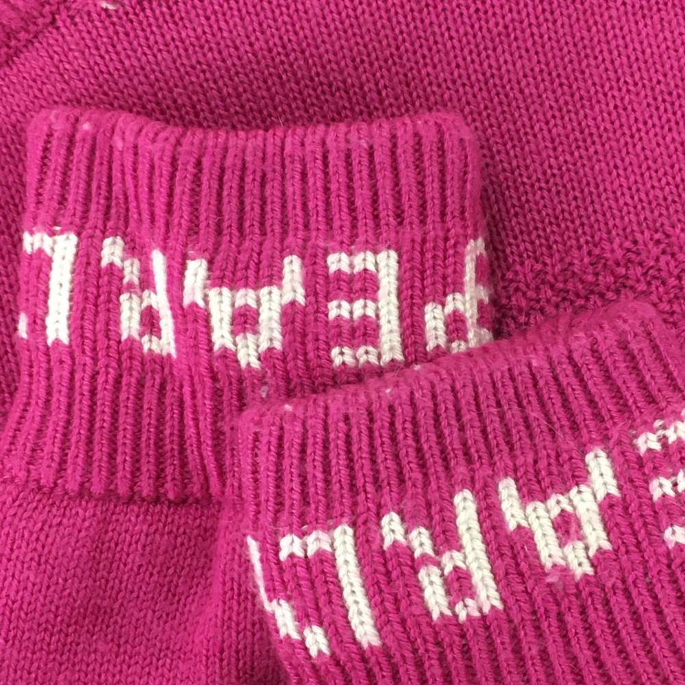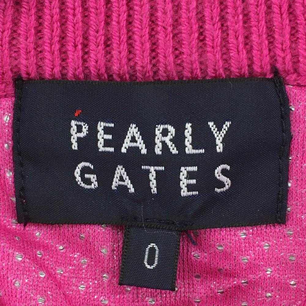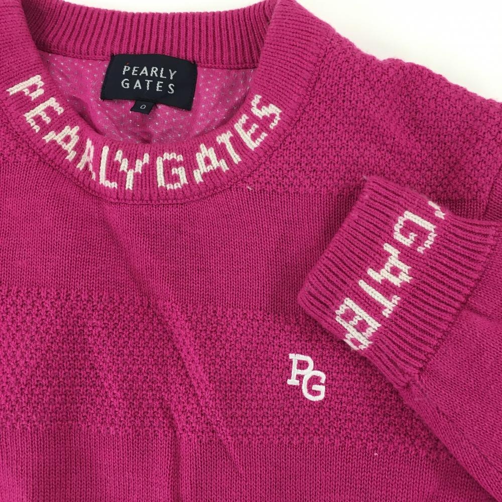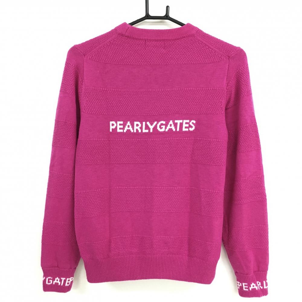 【美品】パーリーゲイツ 裏地付セーター ピンク×白 ボーダー編み ニット レディース 0(S) ゴルフウェア PEARLY GATES