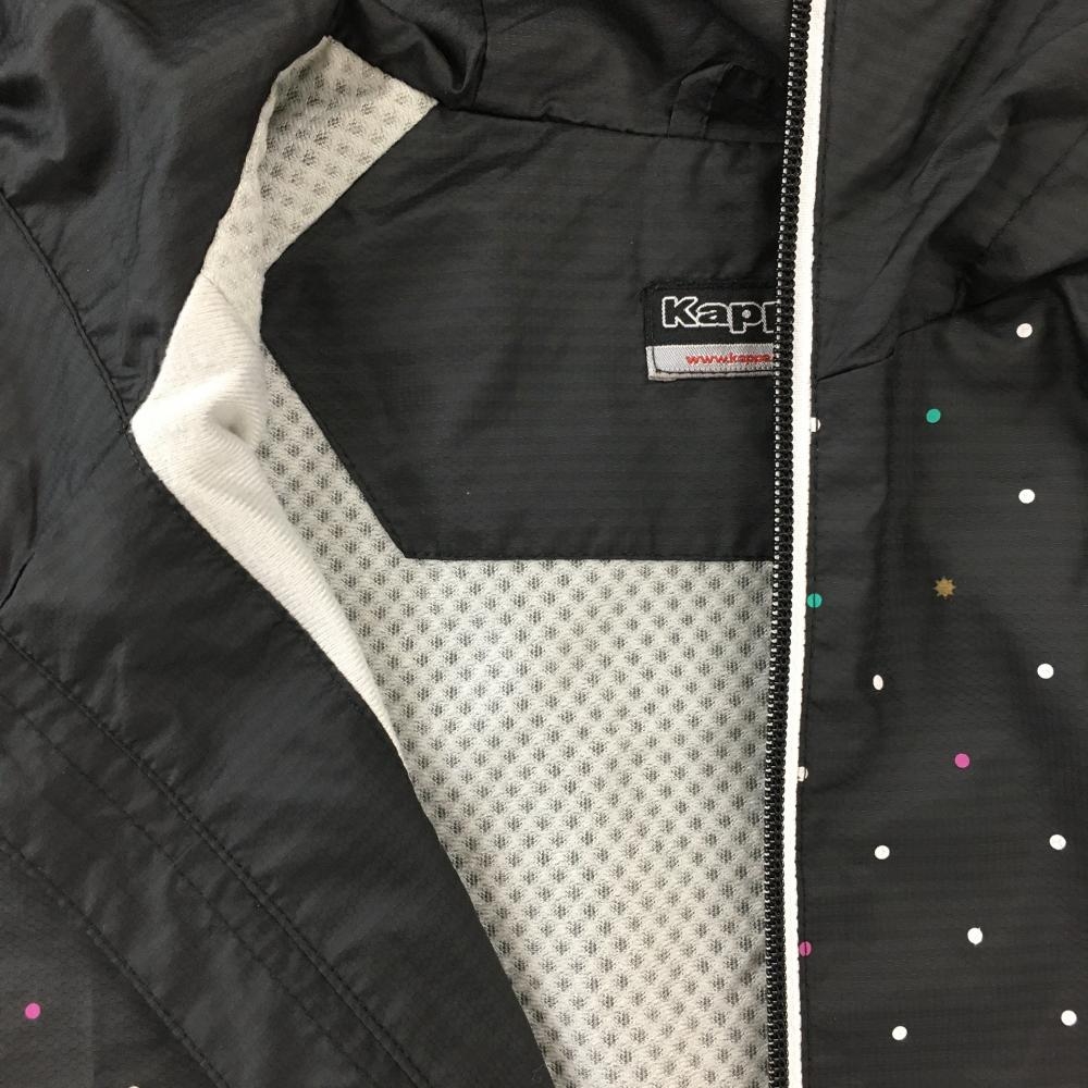【美品】カッパ ジップパーカー 黒×白 前身頃ドット 地模様 裏地微起毛 レディース M ゴルフウェア Kappa