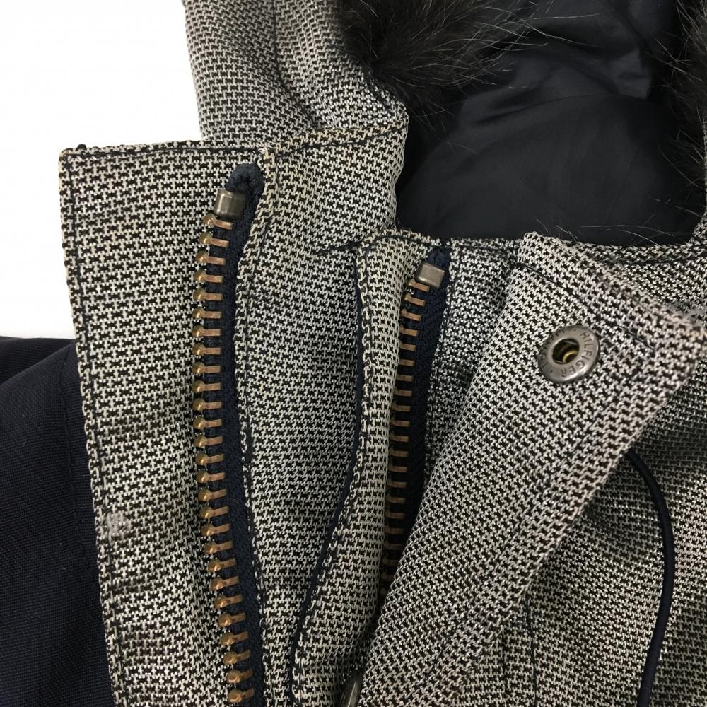 トミーヒルフィガー フード付ジャケット グレー×ネイビー ファー メンズ XS/XP ゴルフウェア Tommy Hilfiger Golf