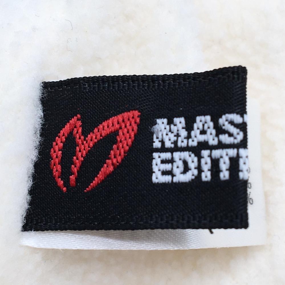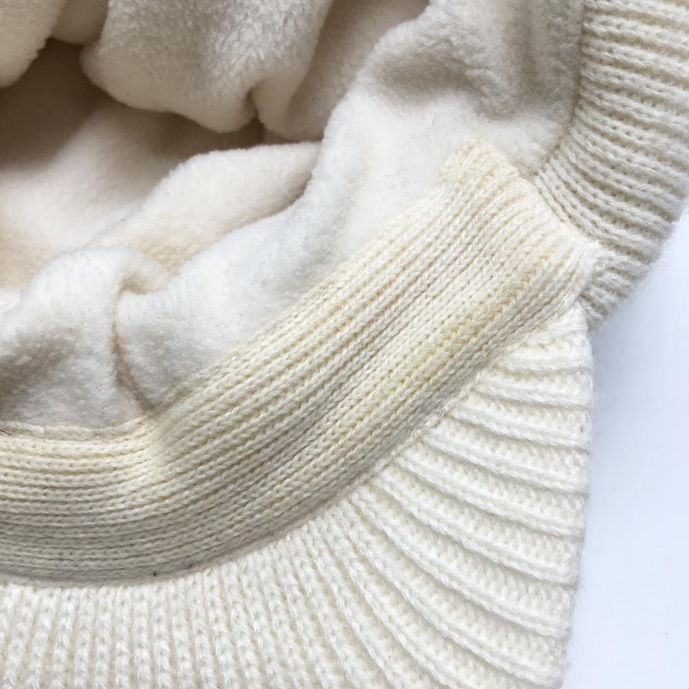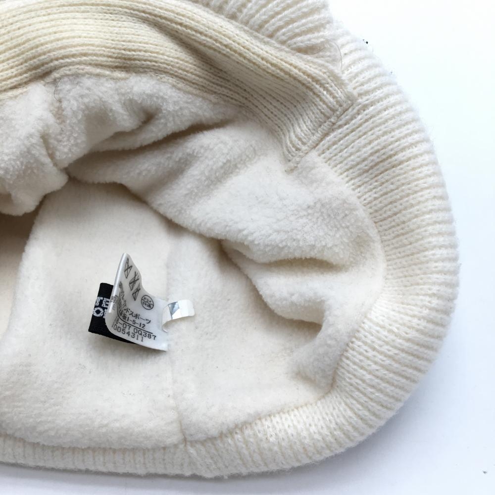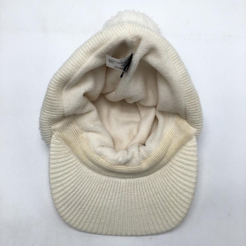 【美品】マスターバニー つば付ニット帽 白×ネイビー 一部ボーダー ウール混 裏起毛 ボンボン付 FR ゴルフウェア MASTER BUNNY EDITION