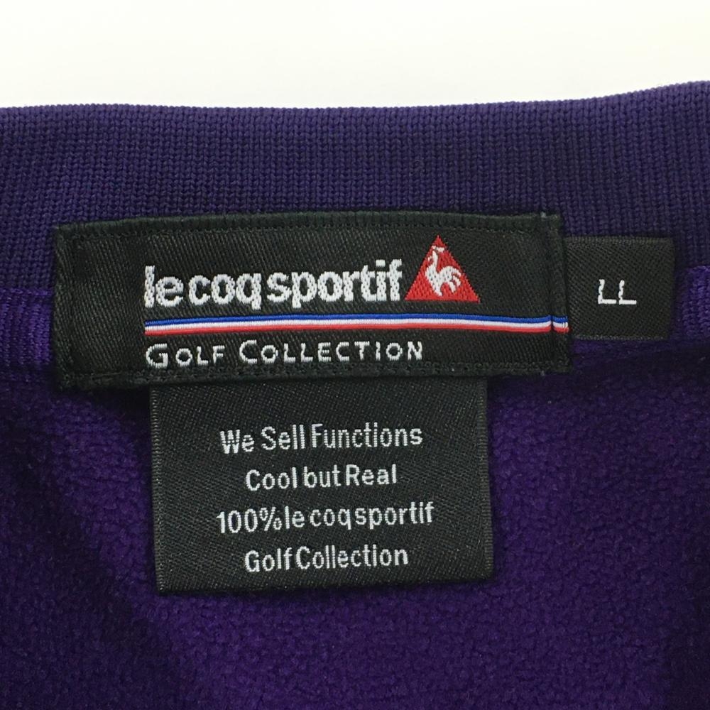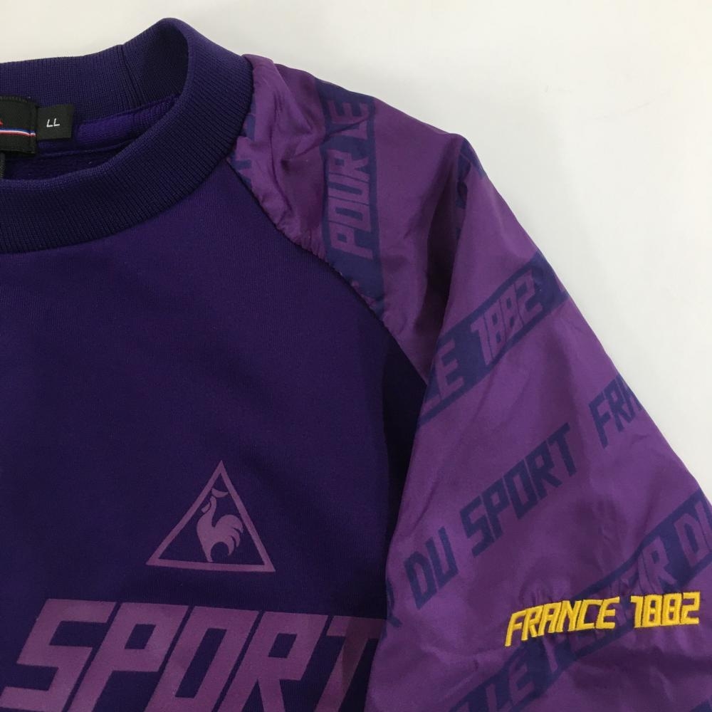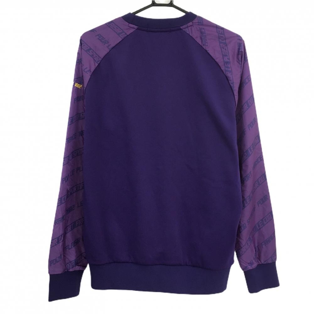 【超美品】ルコック トレーナー パープル×ネイビー 袖英字柄&異素材 裏起毛 メンズ LL ゴルフウェア le coq sportif
