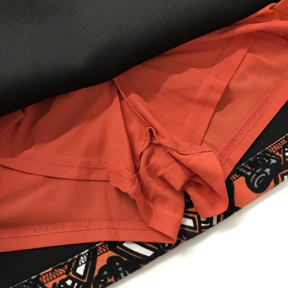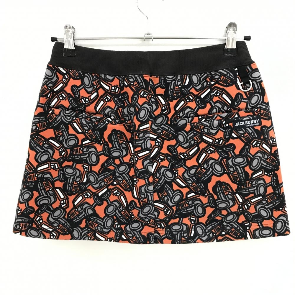 ジャックバニー スカート オレンジ×グレー 車柄 ウエストゴム 調節紐 内側インナーパンツ レディース 1(M) ゴルフウェア Jack Bunny