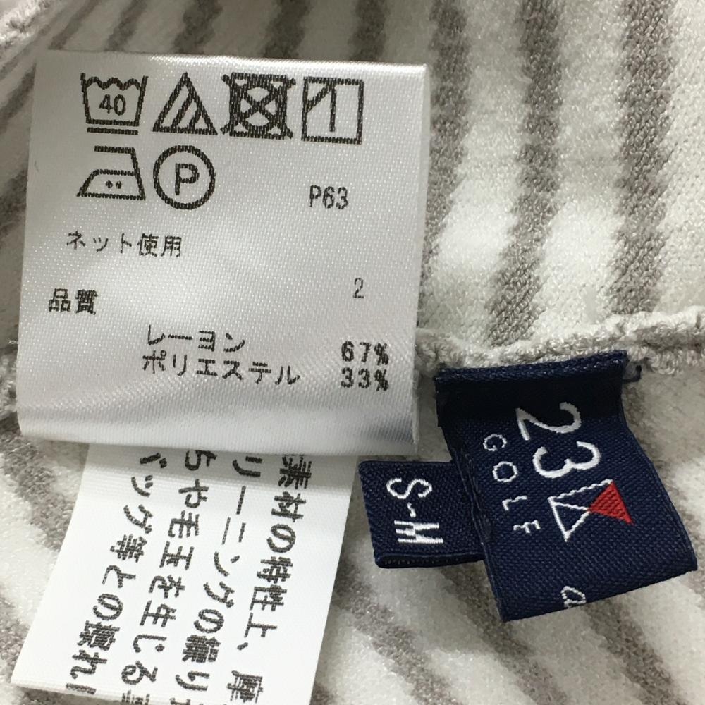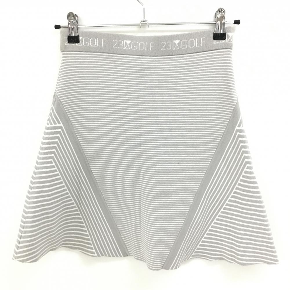 23区ゴルフ ニットスカート ライトグレー×白 ボーダー風 ウエストゴム レディース S-M ゴルフウェア 23区