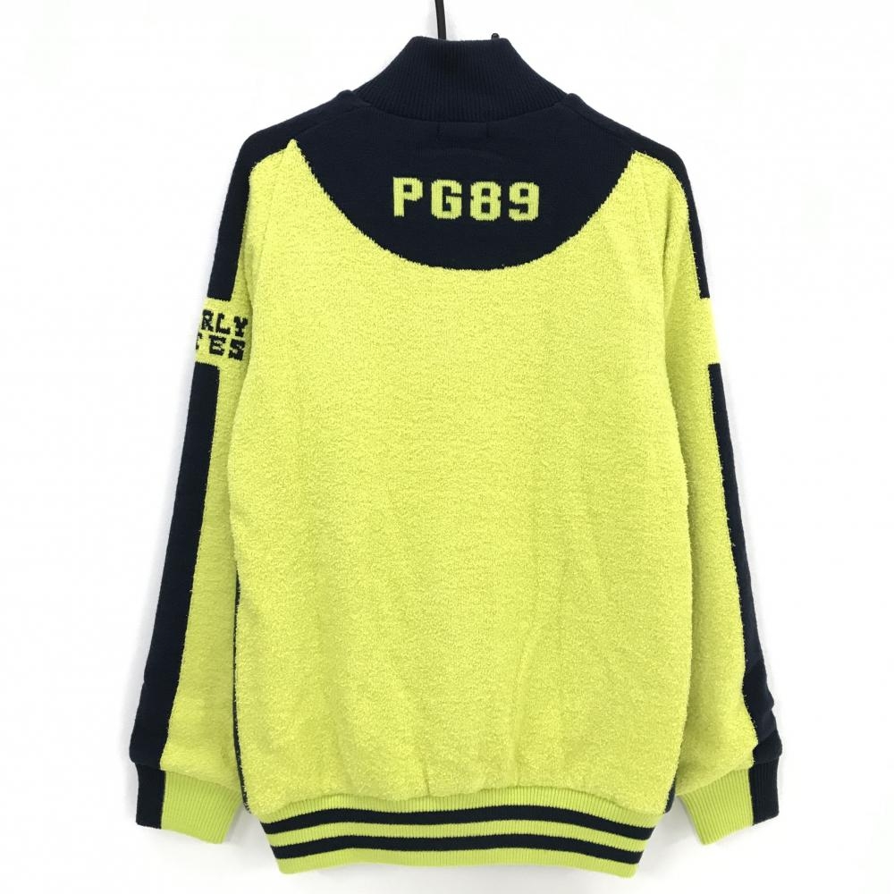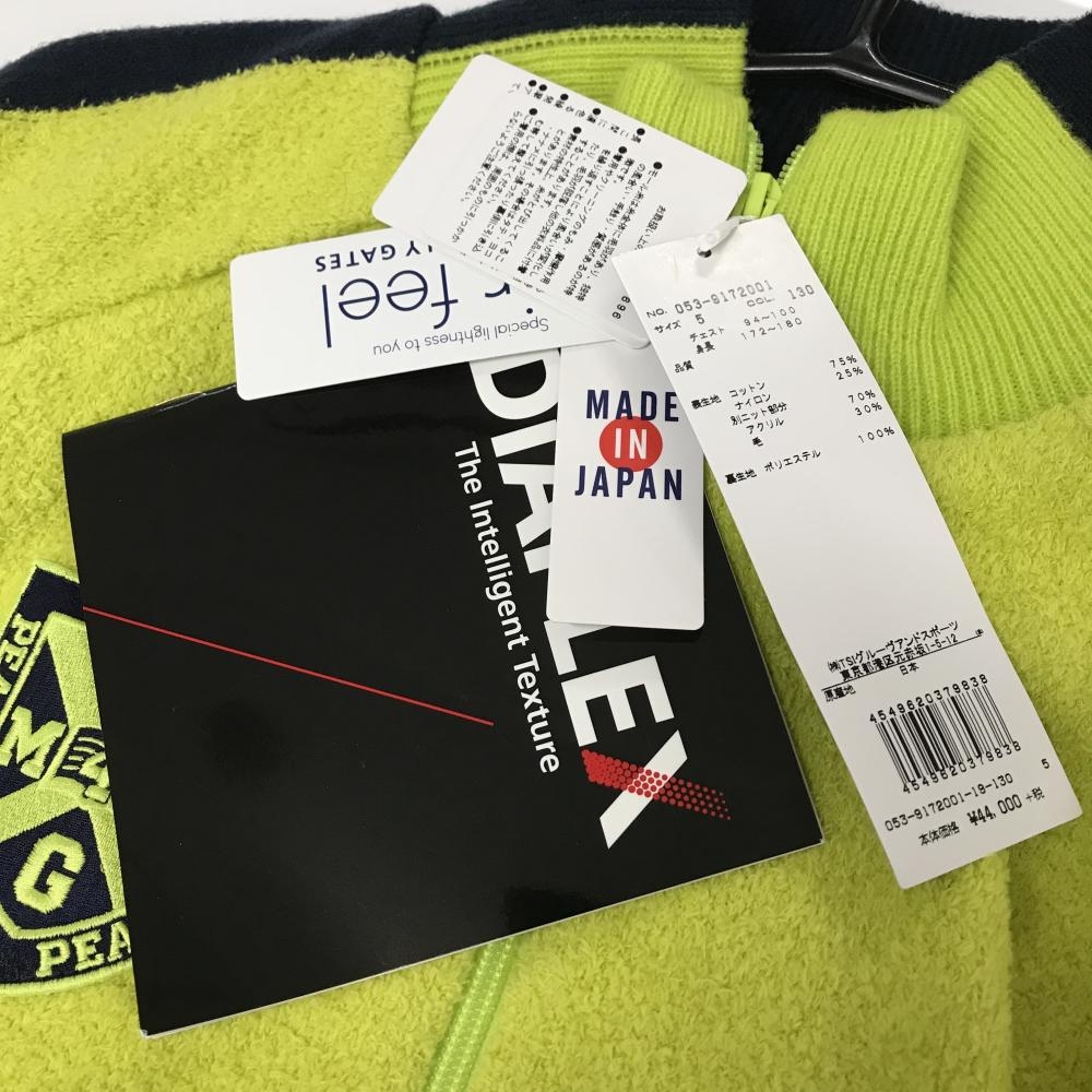 【新品】パーリーゲイツ ニットジャケット イエローグリーン×ネイビー 裏地付 DIAPLEX ブルゾン メンズ 5(L) ゴルフウェア PEARLY GATES