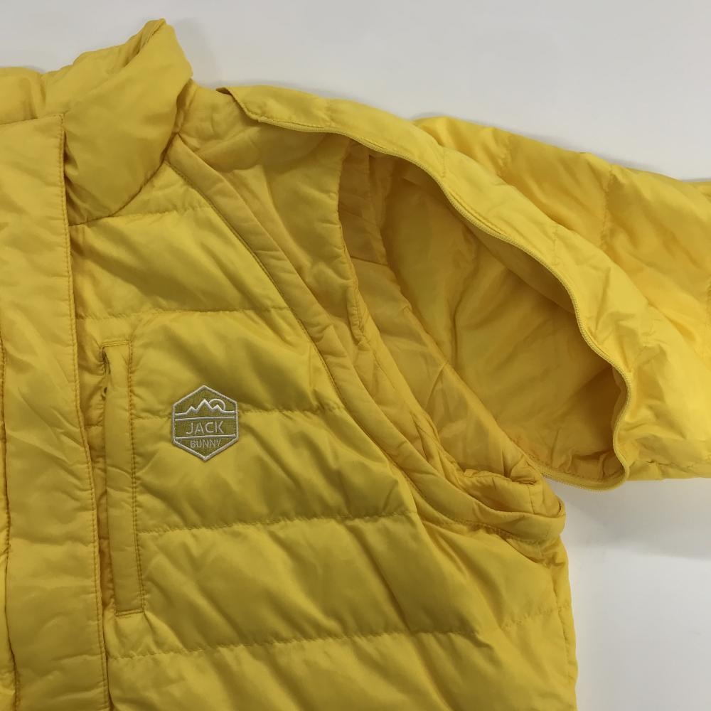 【超美品】ジャックバニー 2WAYダウンジャケット イエロー 袖着脱可 胸元ロゴ レディース 2(L) ゴルフウェア Jack Bunny