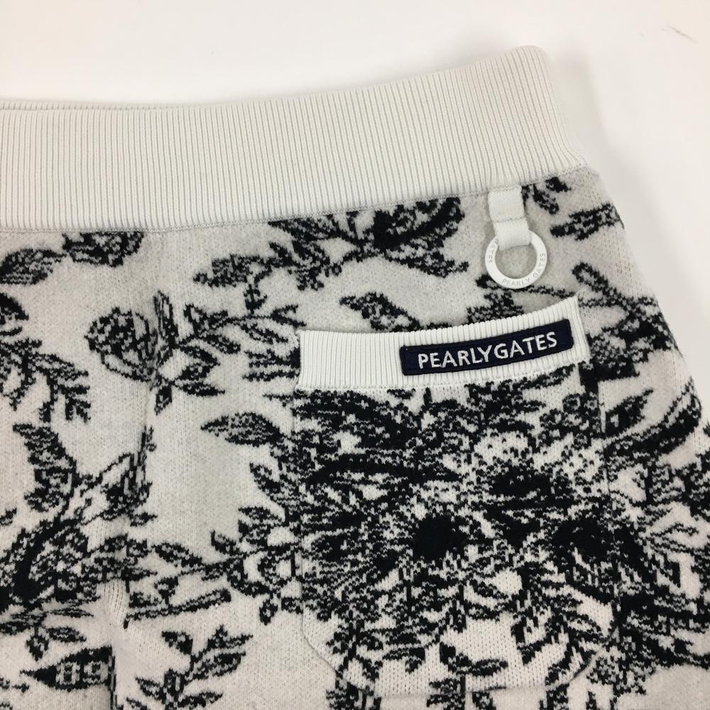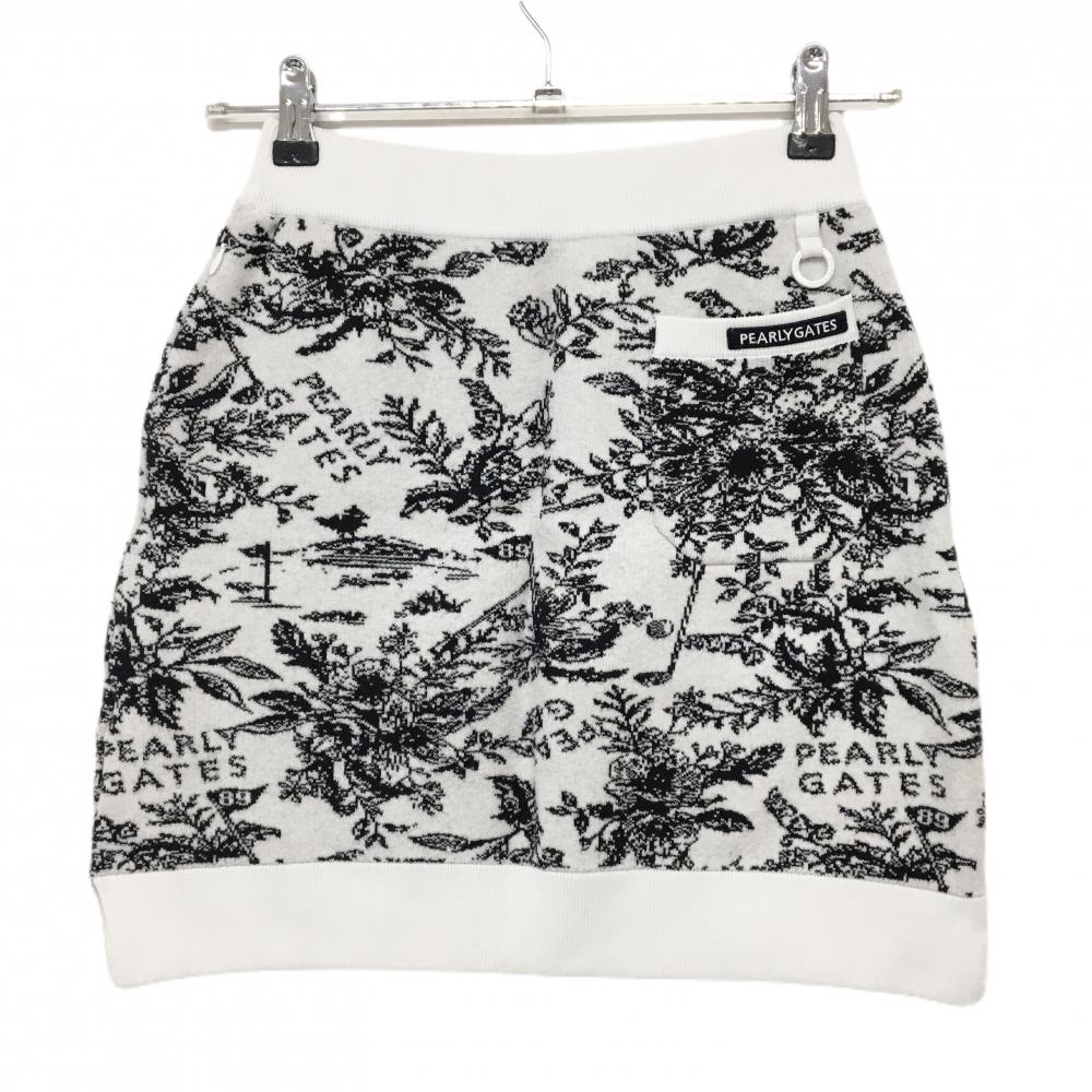 【超美品】パーリーゲイツ ニットスカート 白×黒 花柄 ウエストゴム レディース 0(S) ゴルフウェア PEARLY GATES