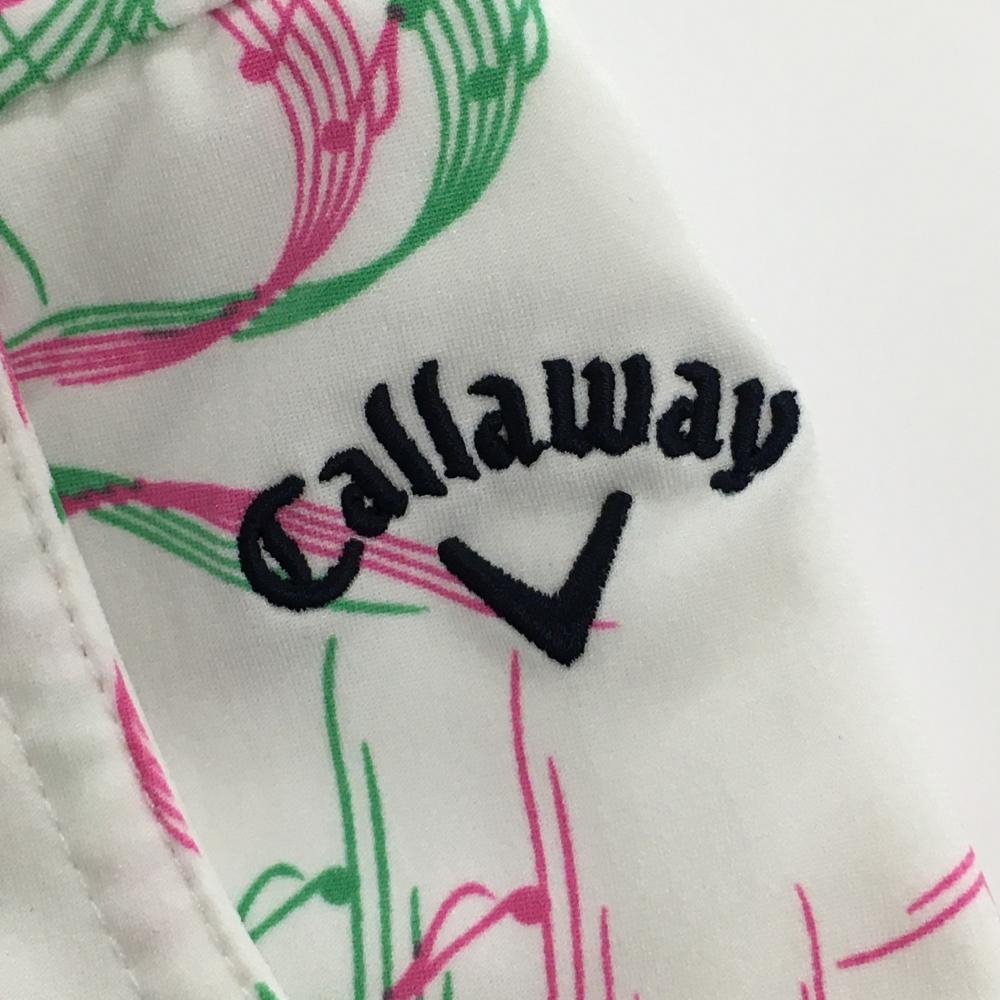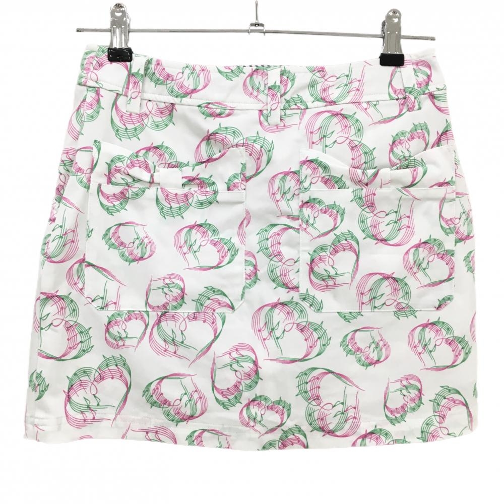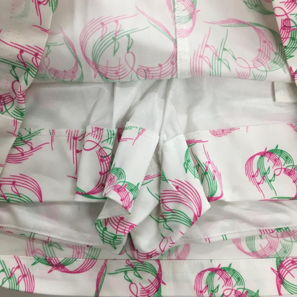 【超美品】キャロウェイ スカート 白×ピンク×グリーン 総柄 音符 内側インナーパンツ ストレッチ レディース SS ゴルフウェア Callaway