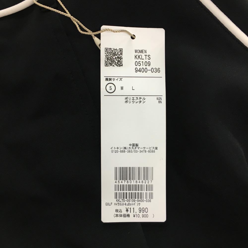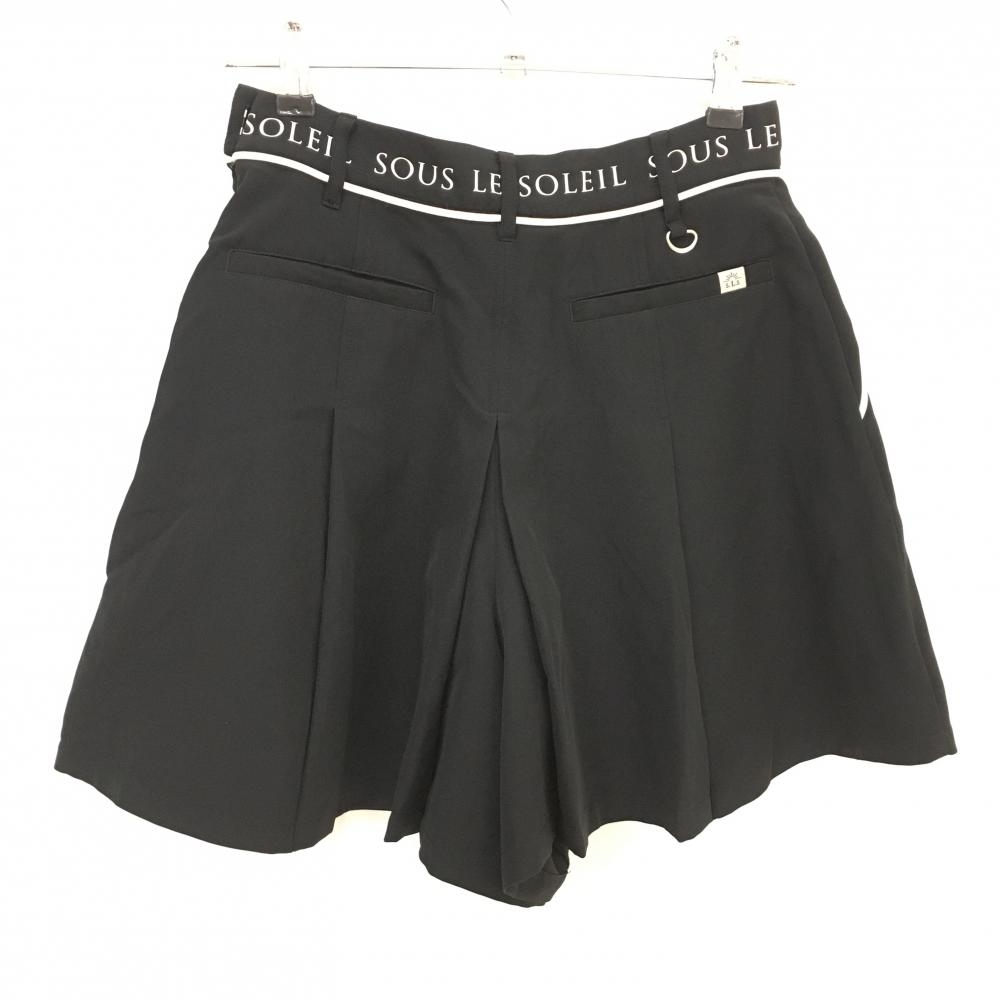 【新品】ソルソレイユ キュロットスカート 黒×白 ウエストロゴ プリーツ レディース S ゴルフウェア SOUS LE SOLEIL