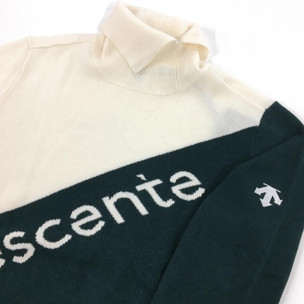 【新品】デサントゴルフ タートルネックセーター ダークグリーン×アイボリー バイカラー 中田英寿 レディース S ゴルフウェア DESCENTE
