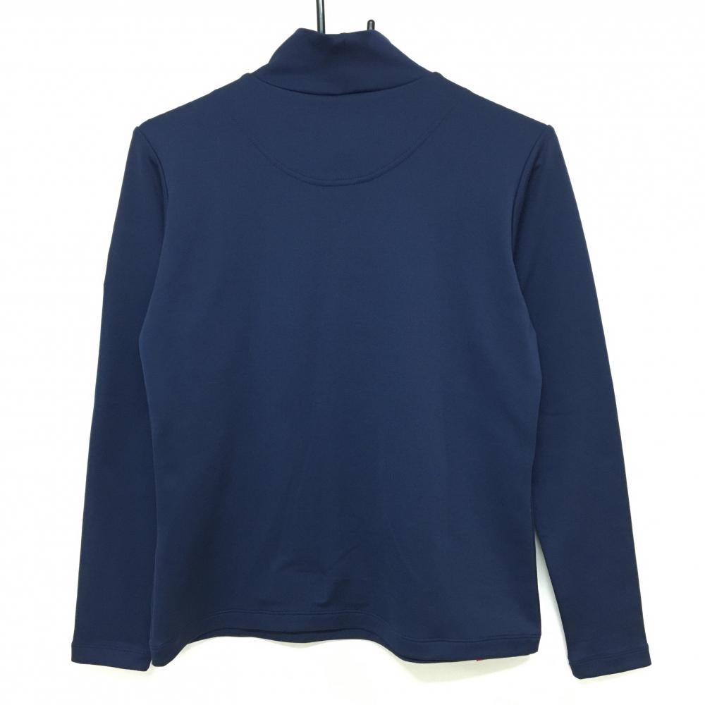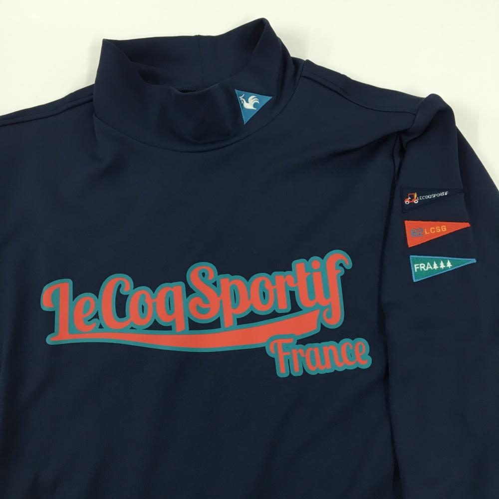 【超美品】ルコックゴルフ 長袖ハイネックシャツ ネイビー×オレンジ フロントロゴ 裏微起毛 レディース M ゴルフウェア le coq sportif