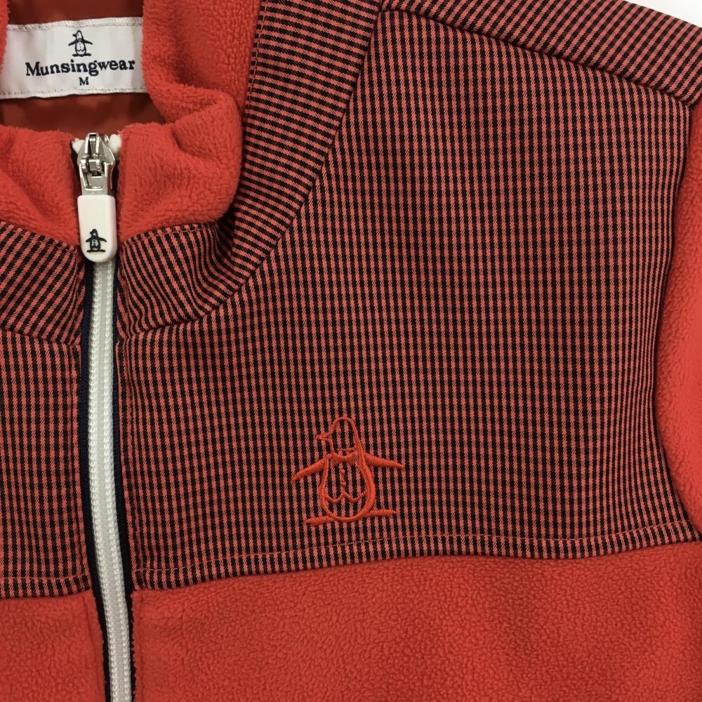 マンシングウェア ジャケット レッド×黒 フリース 上部チェック 袖・袖口汚れ レディース M ゴルフウェア Munsingwear