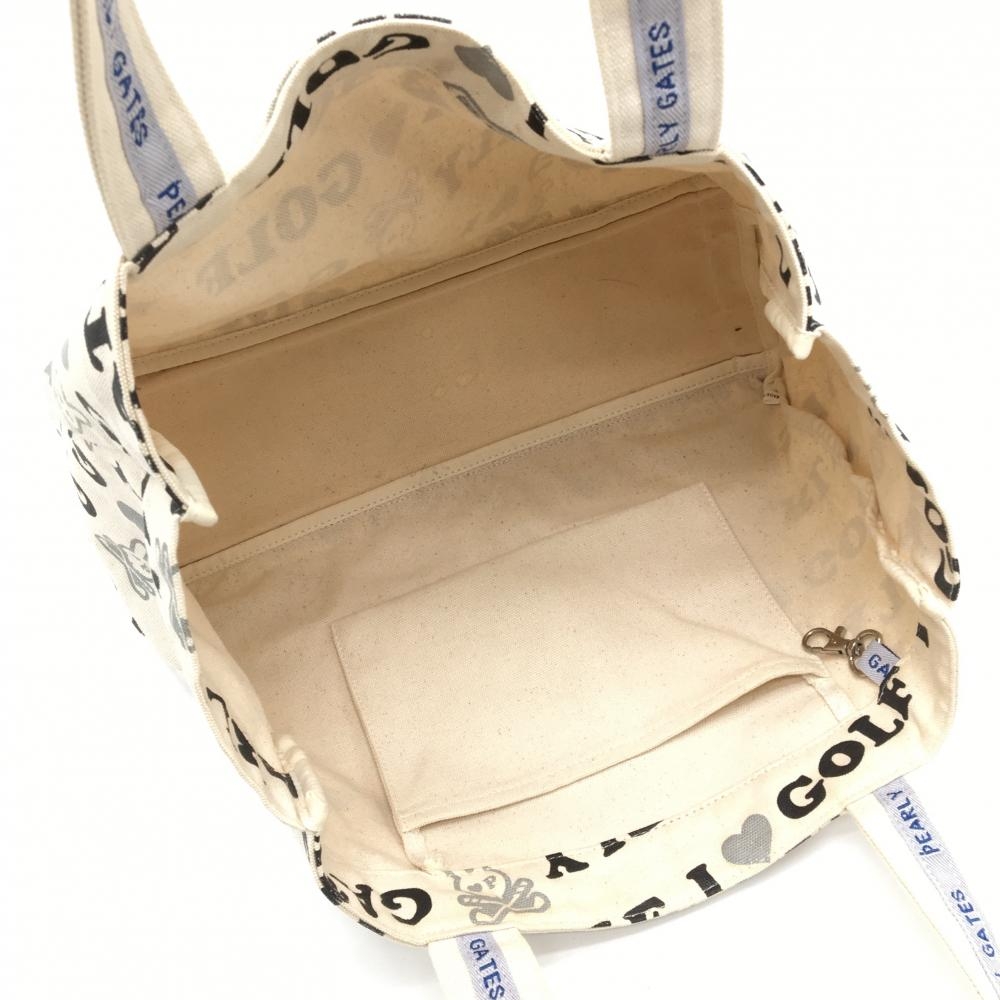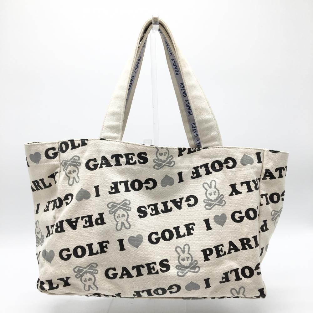 パーリーゲイツ カートバッグ 白×黒 キャンバス地 ロゴ総柄 ゴルフ PEARLY GATES