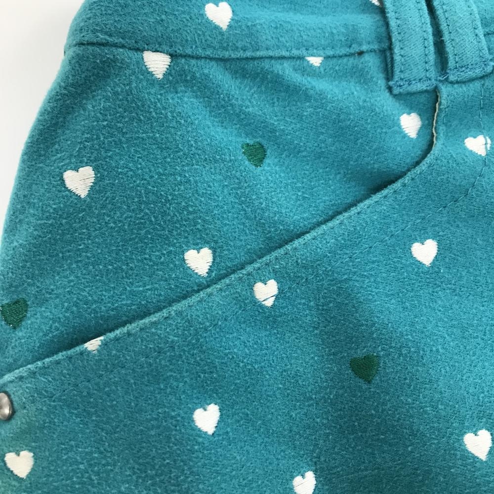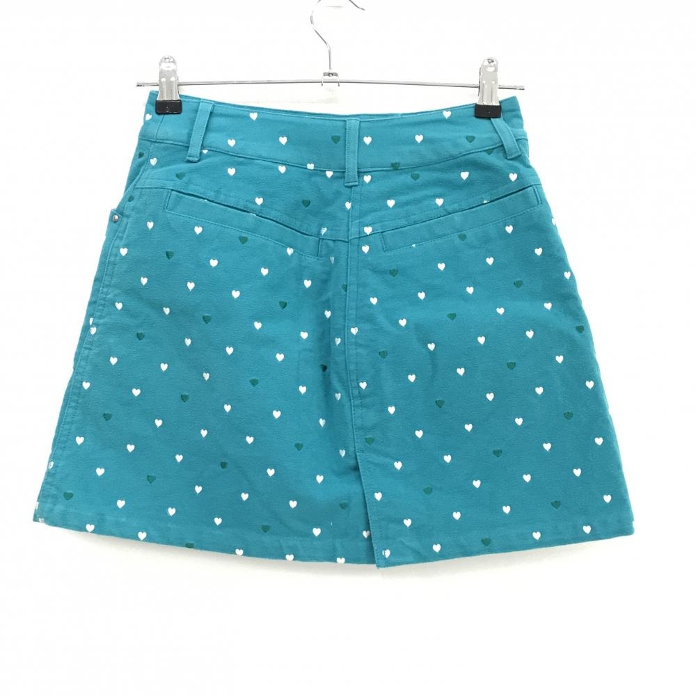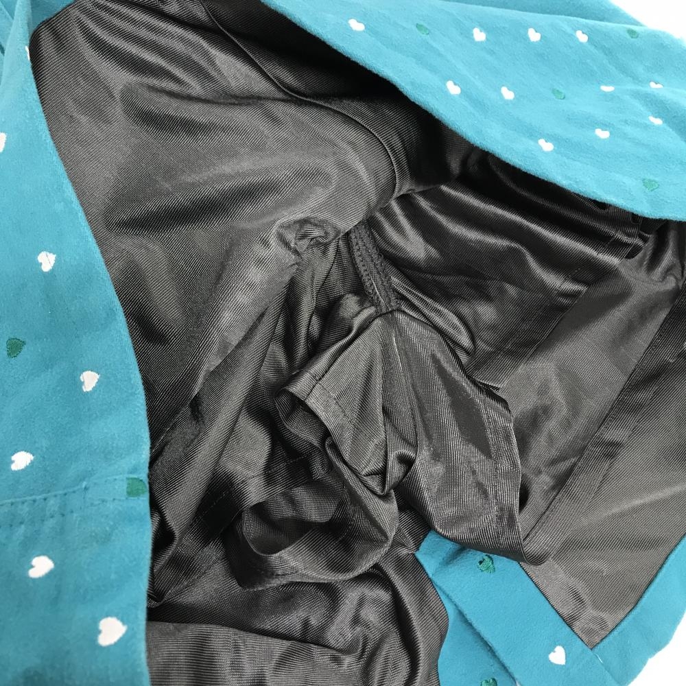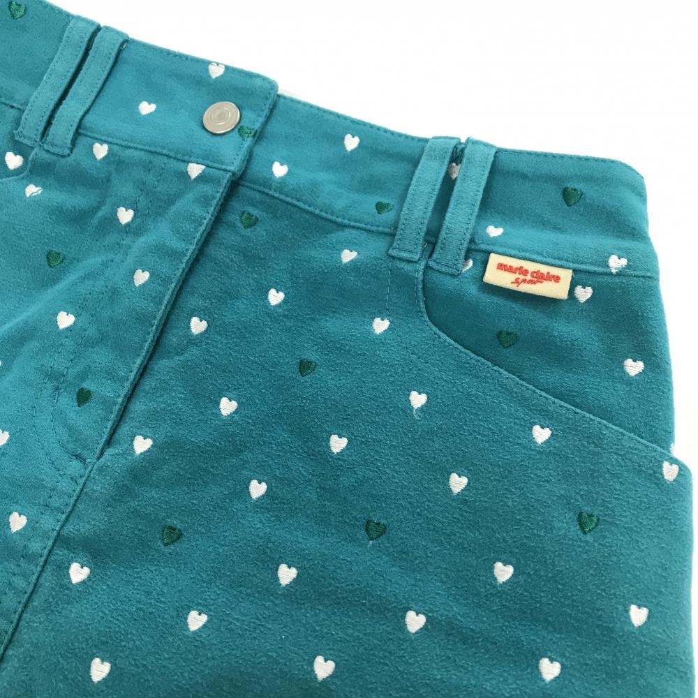 マリクレールスポール スカート ブルーグリーン×白 ハート総柄 微起毛 内側インナーパンツ レディース M ゴルフウェア marie claire