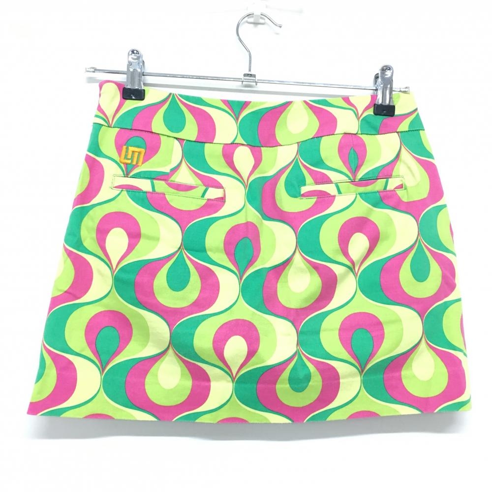 ラウドマウス スカート グリーン×ピンク 総柄 内側インナーパンツ レディース S ゴルフウェア LOUDMOUTH