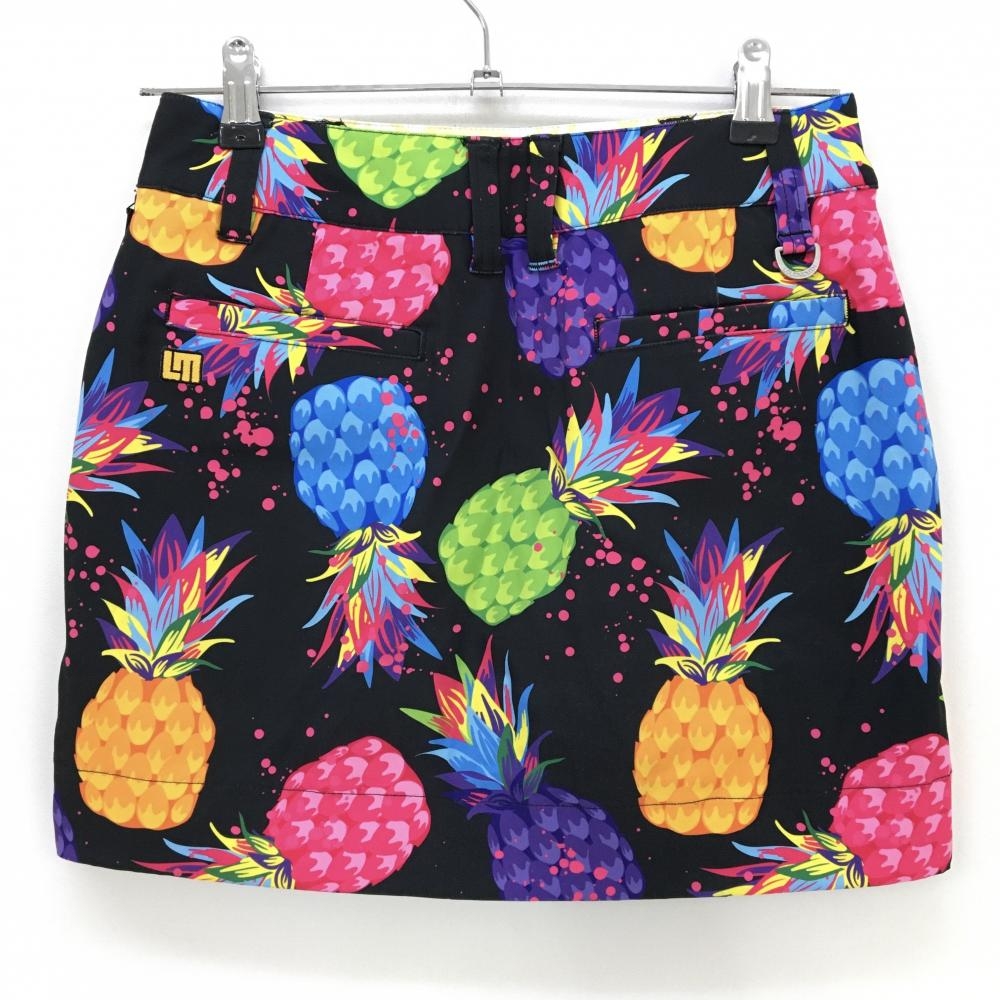 【超美品】ラウドマウス スカート 黒×マルチカラー パイナップル総柄 レディース M ゴルフウェア LOUDMOUTH