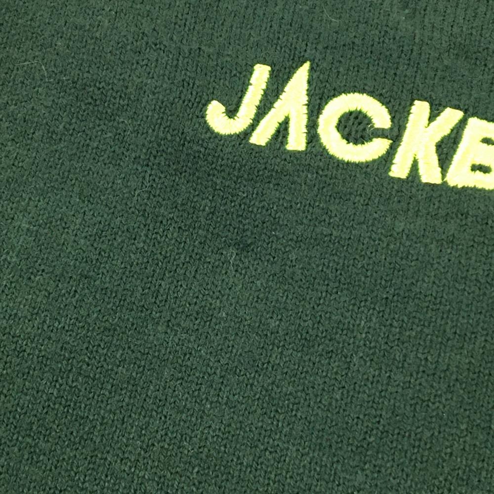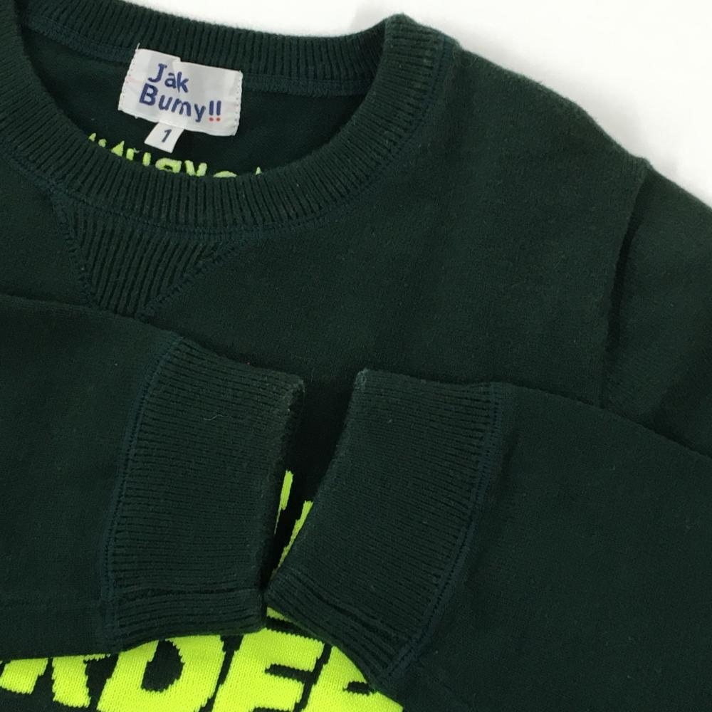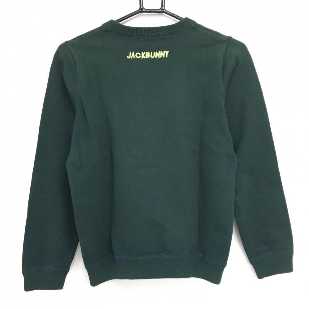 ジャックバニー セーター ダークグリーン×蛍光イエロー コットン混 ロゴ レディース 1(M) ゴルフウェア Jack Bunny