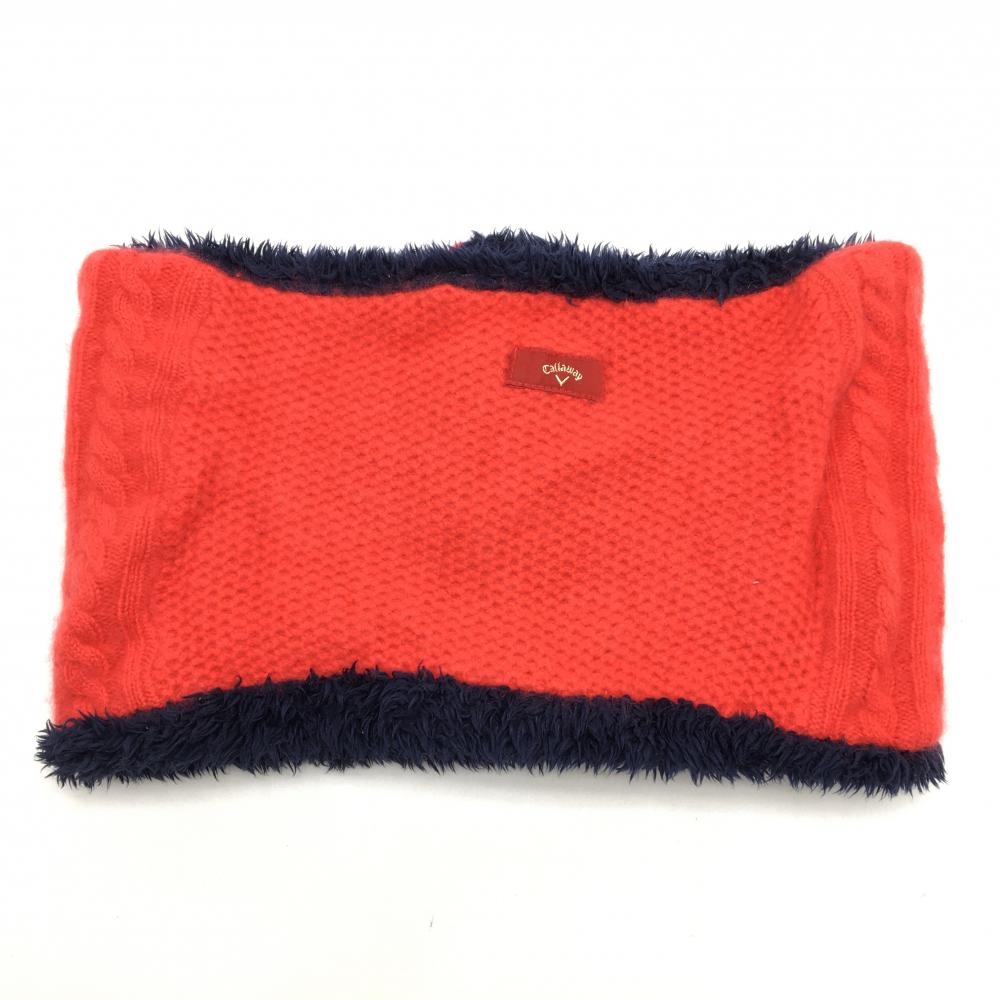 【美品】キャロウェイ リバーシブルネックウォーマー ネイビー 片面レッド ボア×ニット ゴルフウェア Callaway