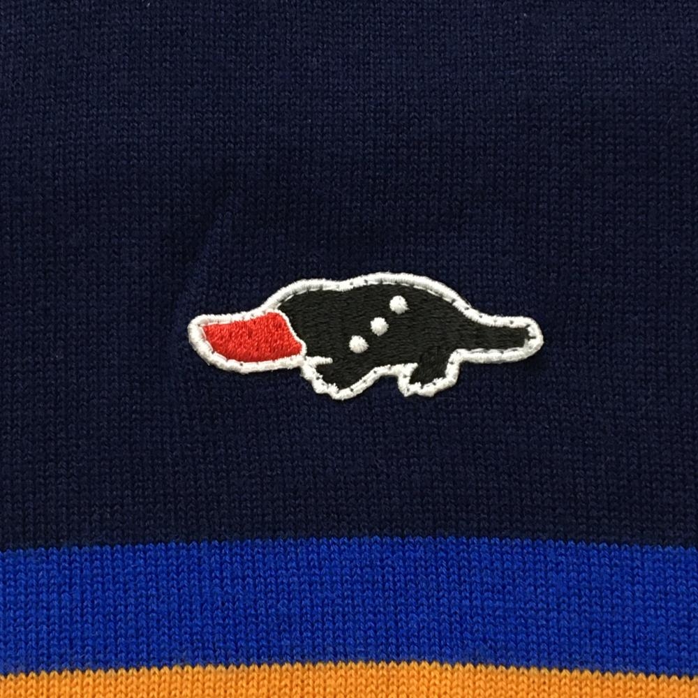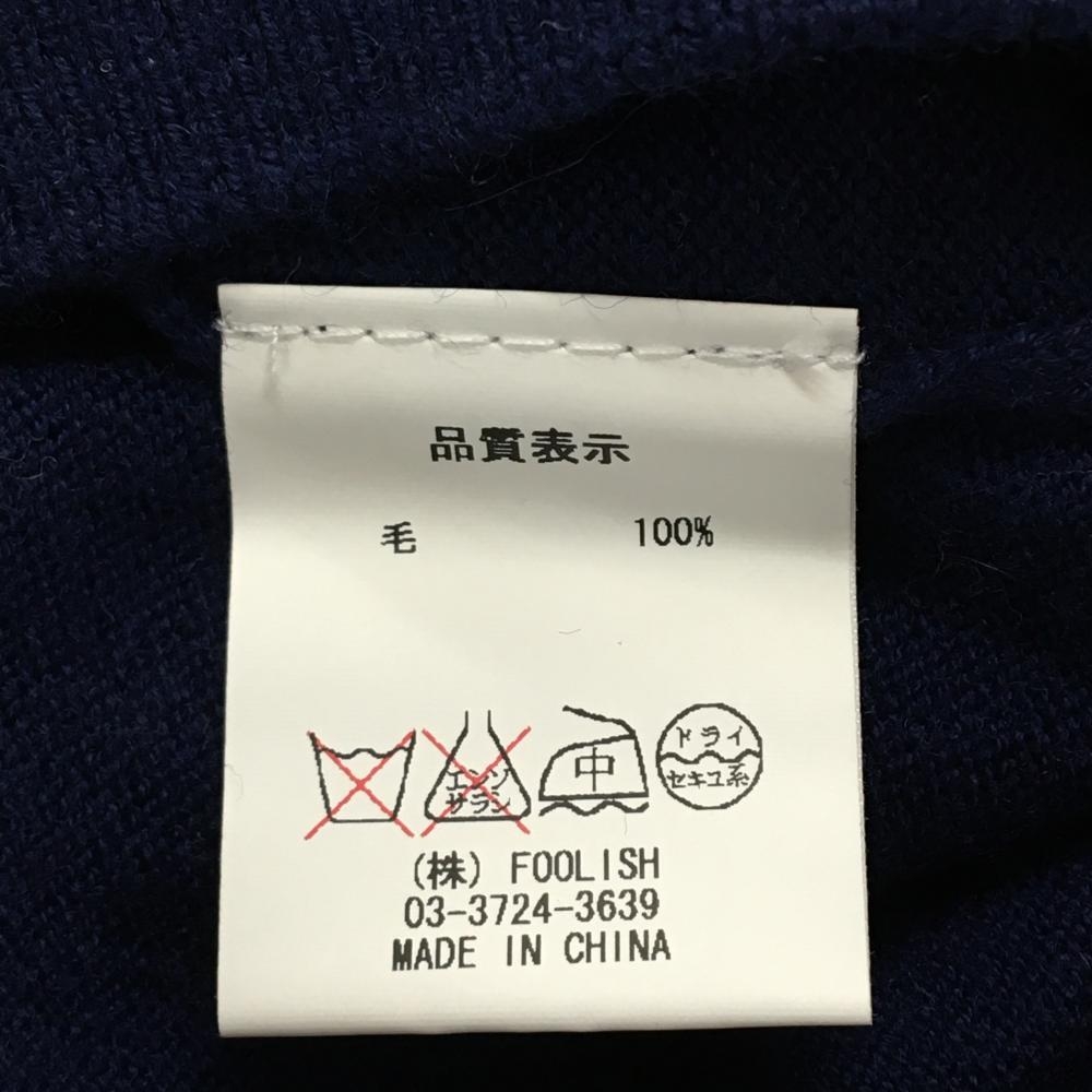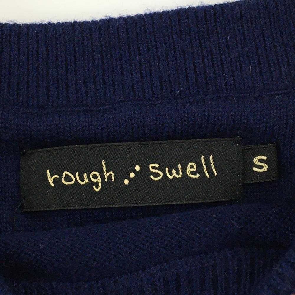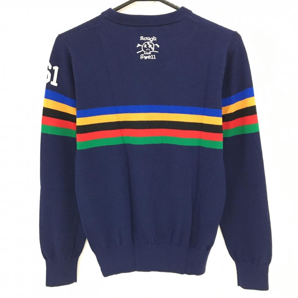 【超美品】ラフアンドスウェル セーター ネイビー×マルチカラー 胸元ライン ウール100% ニット メンズ S ゴルフウェア rough&swell