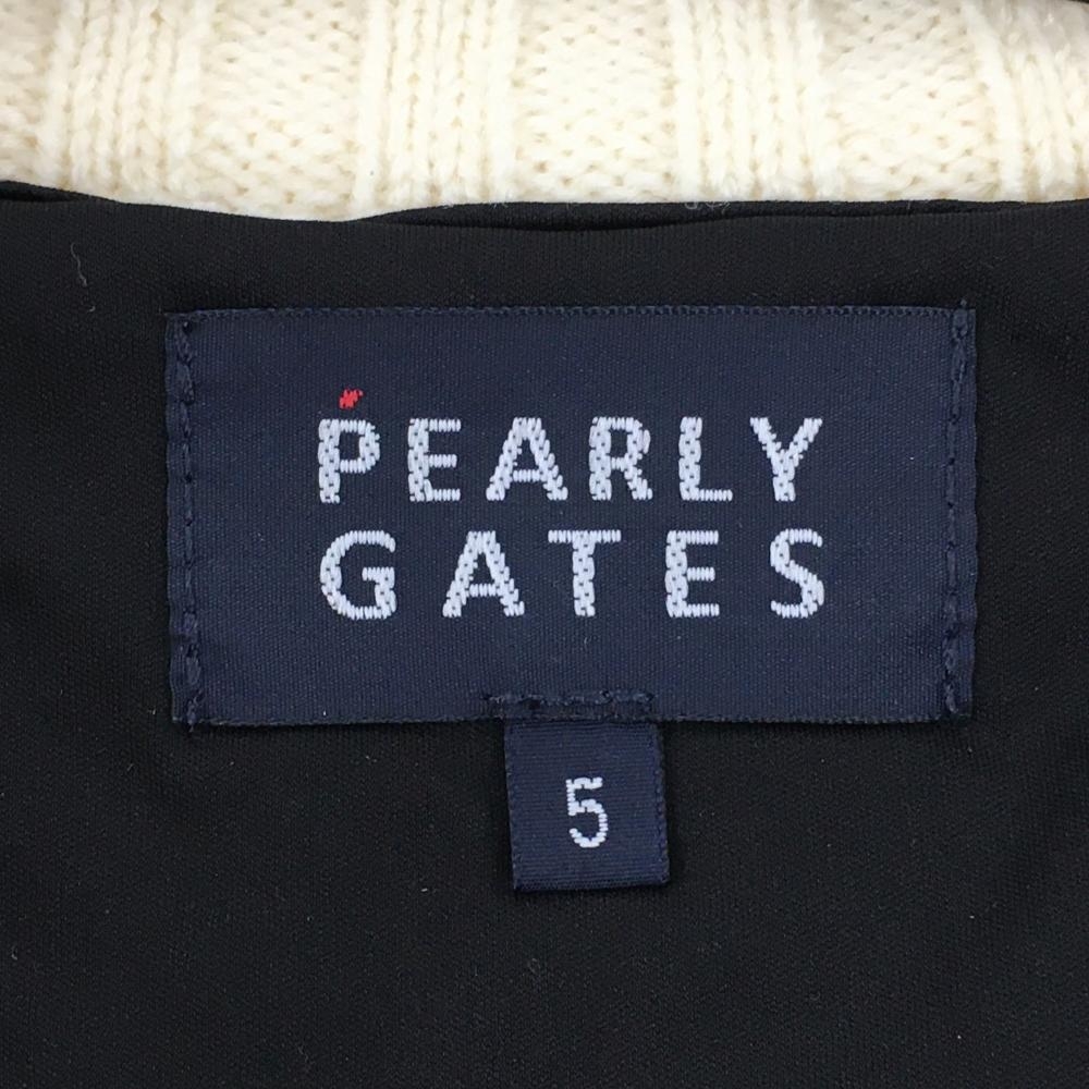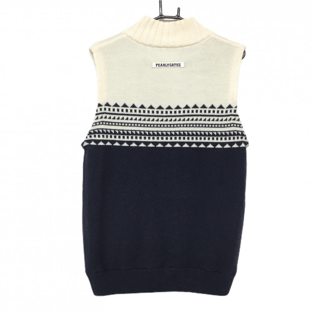 【超美品】パーリーゲイツ 中綿ニットベスト 白×ネイビー 胸元柄 ダブルジップ メンズ 5(L) ゴルフウェア PEARLY GATES