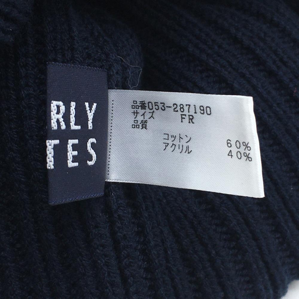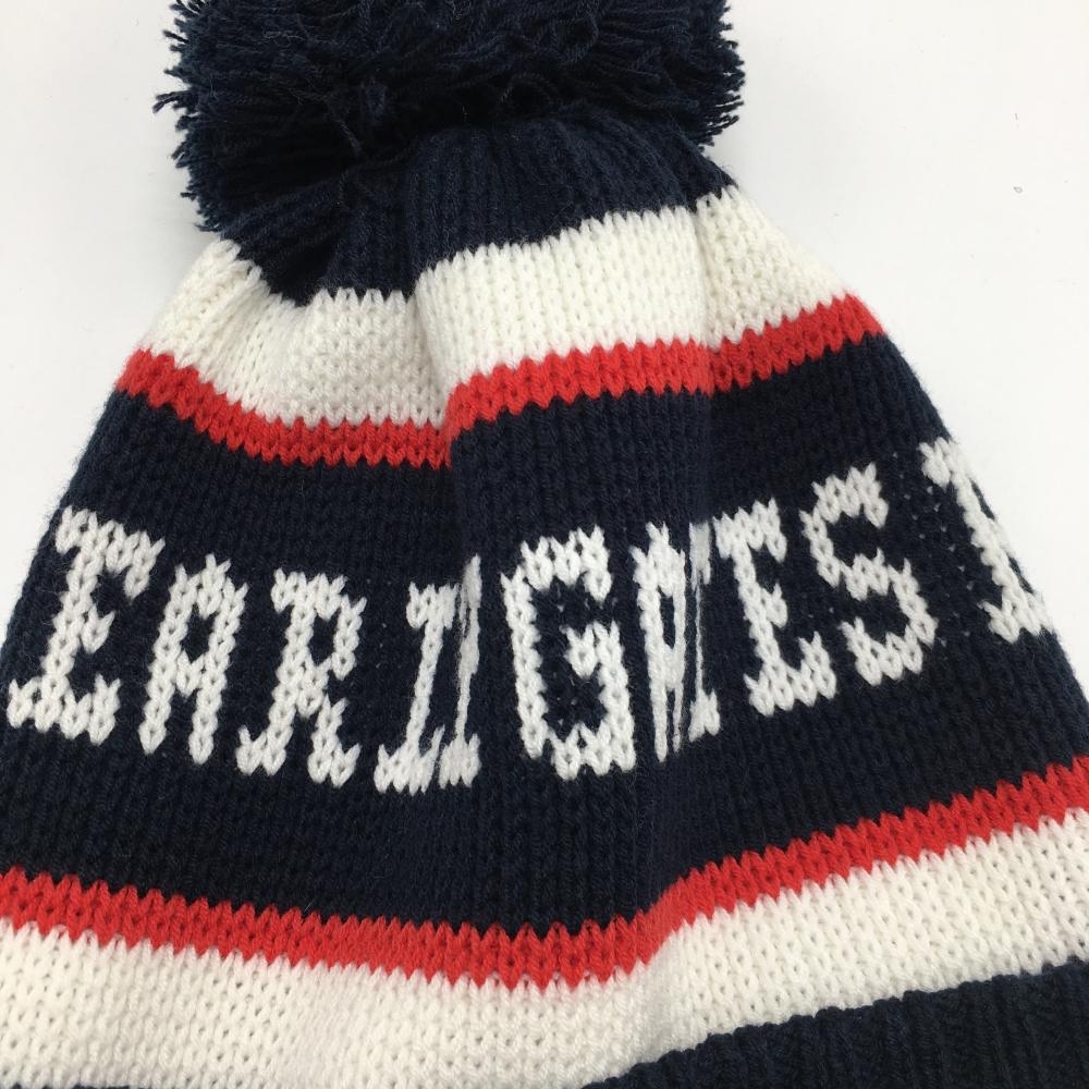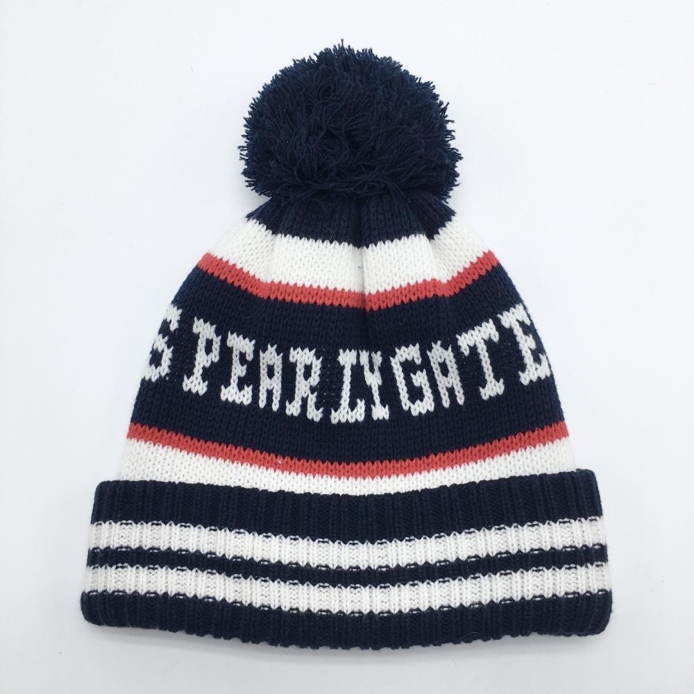 【超美品】パーリーゲイツ ニット帽 ネイビー×白 ボーダー風 ボンボン付 FR ゴルフウェア PEARLY GATES