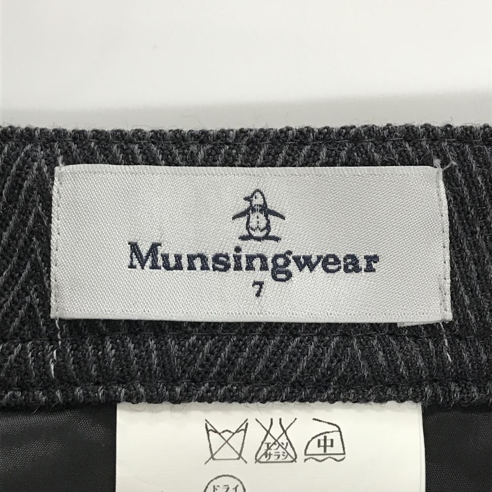 マンシングウェア キュロットスカート ダークグレー×レッド 織生地 前面プリーツ ウール混 裏地付 レディース 7 ゴルフウェア Munsingwear