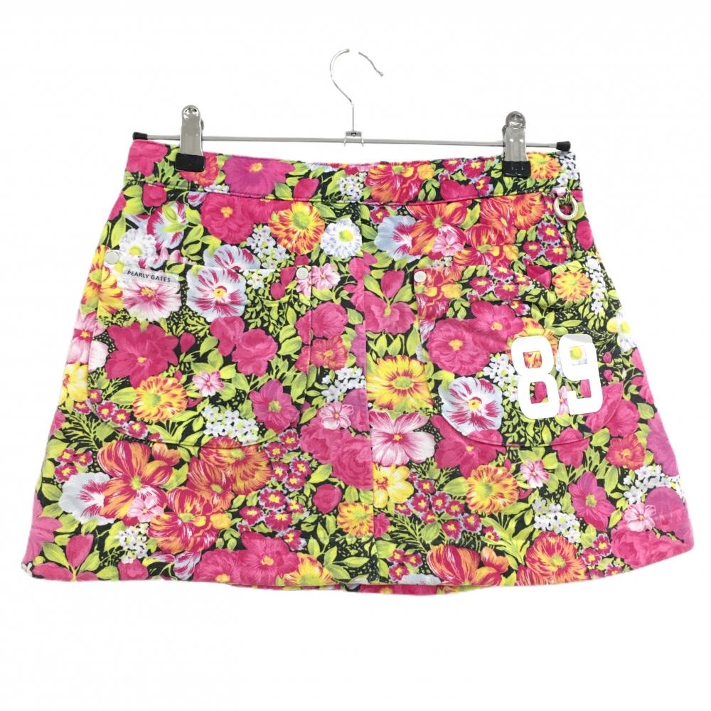 【超美品】パーリーゲイツ スカート ピンク×マルチカラー 花柄 ウエスト調整紐 レディース 1(M) ゴルフウェア PEARLY GATES