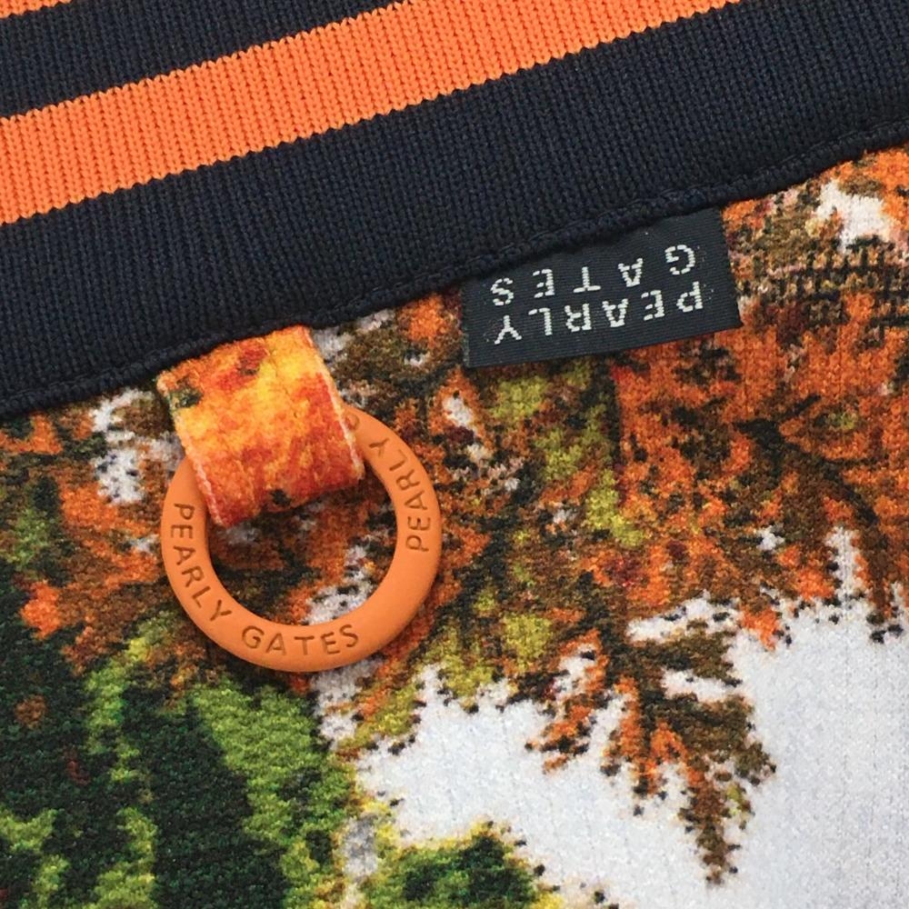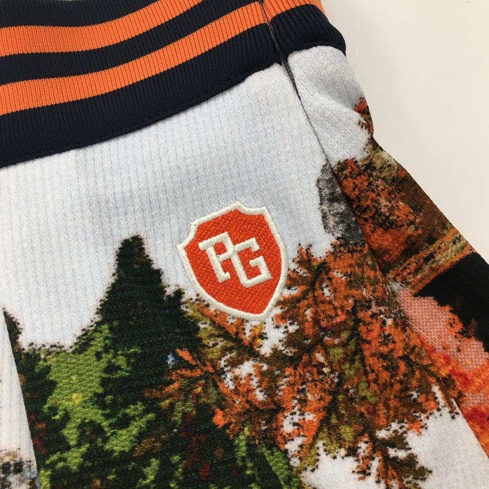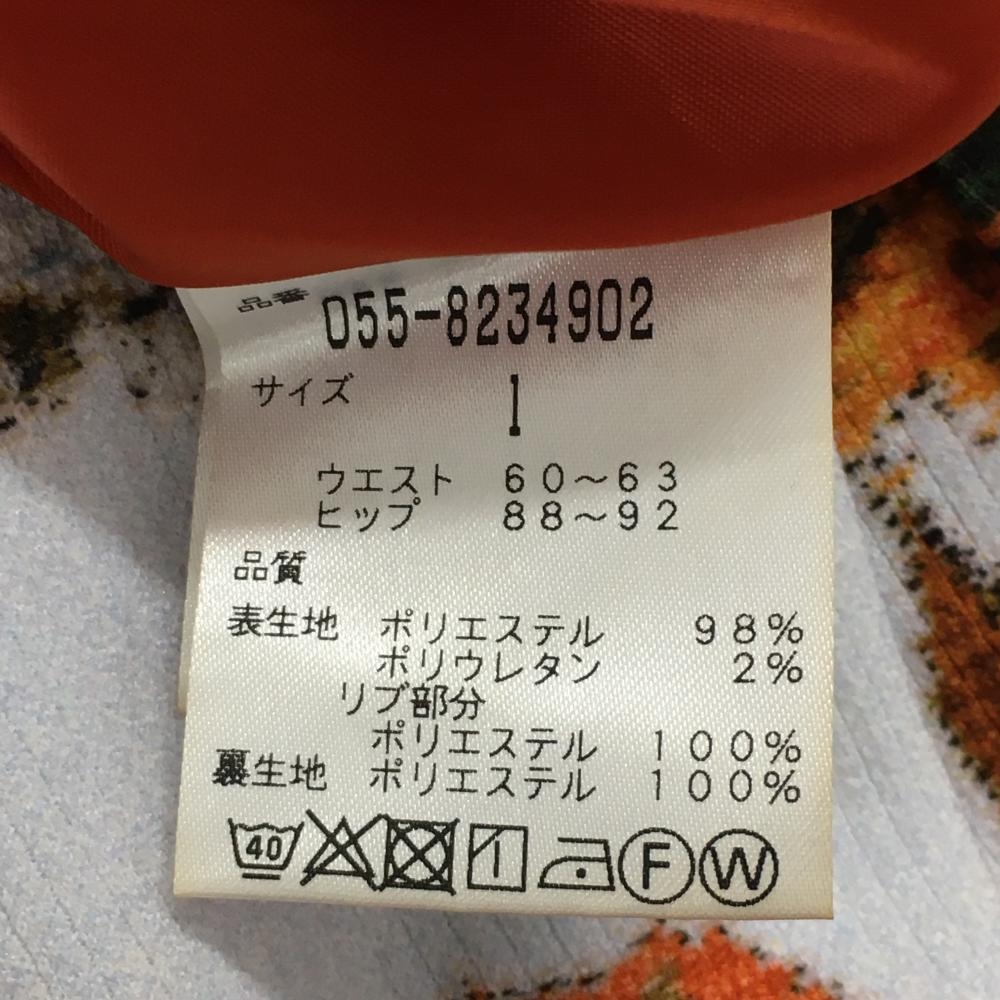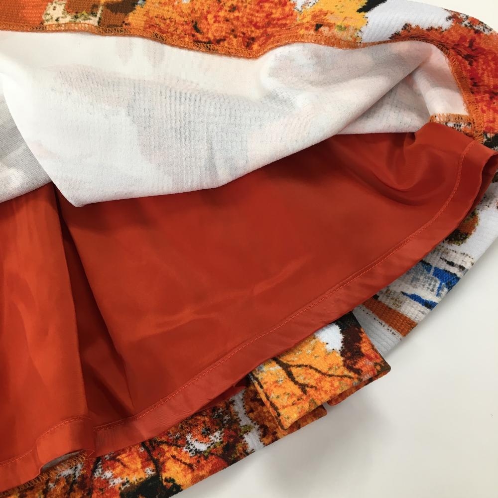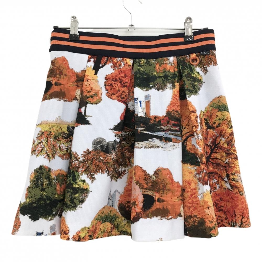 【超美品】パーリーゲイツ スカート 白×オレンジ 総柄 木 ベルト部ゴム レディース 1(M) ゴルフウェア PEARLY GATES