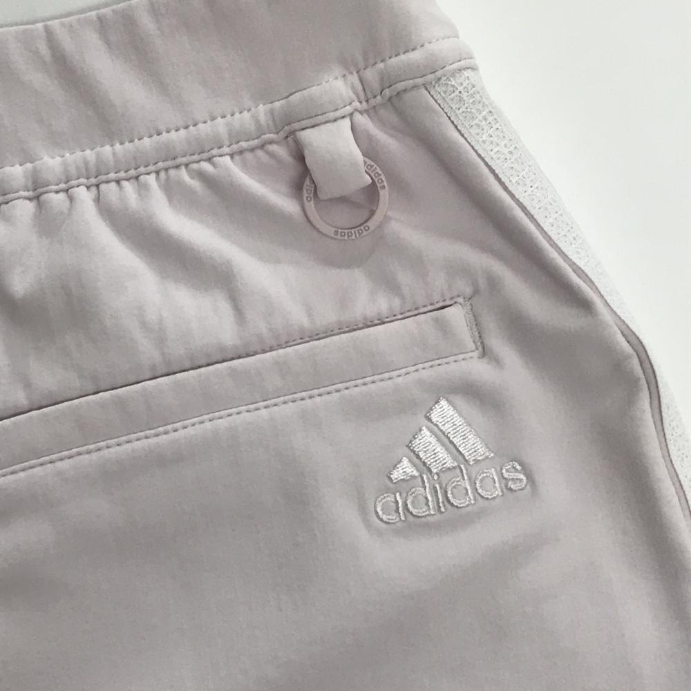 【超美品】アディダス スカート ベビーピンク サイド3ライン ストレッチ 内側インナーパンツ レディース M ゴルフウェア adidas