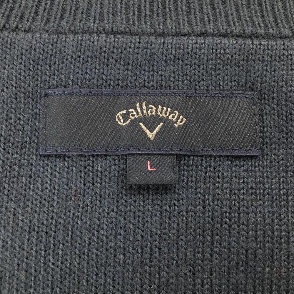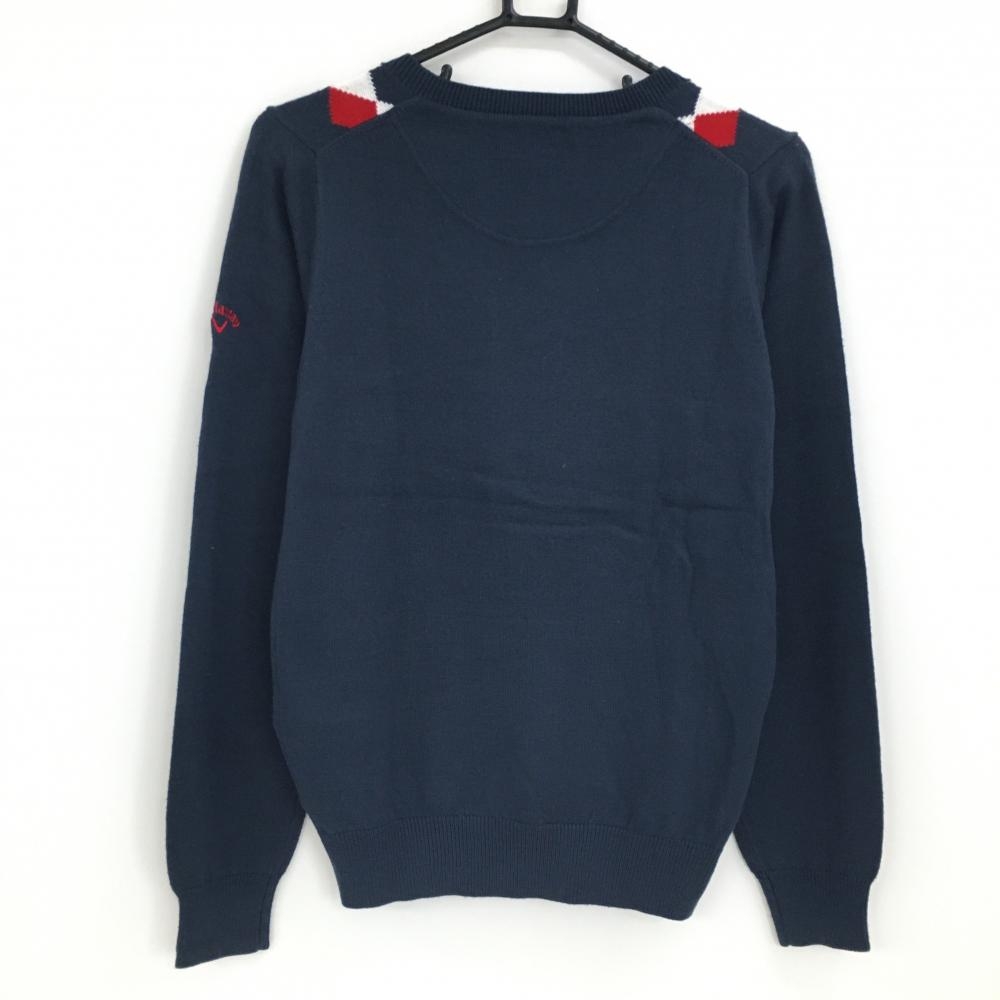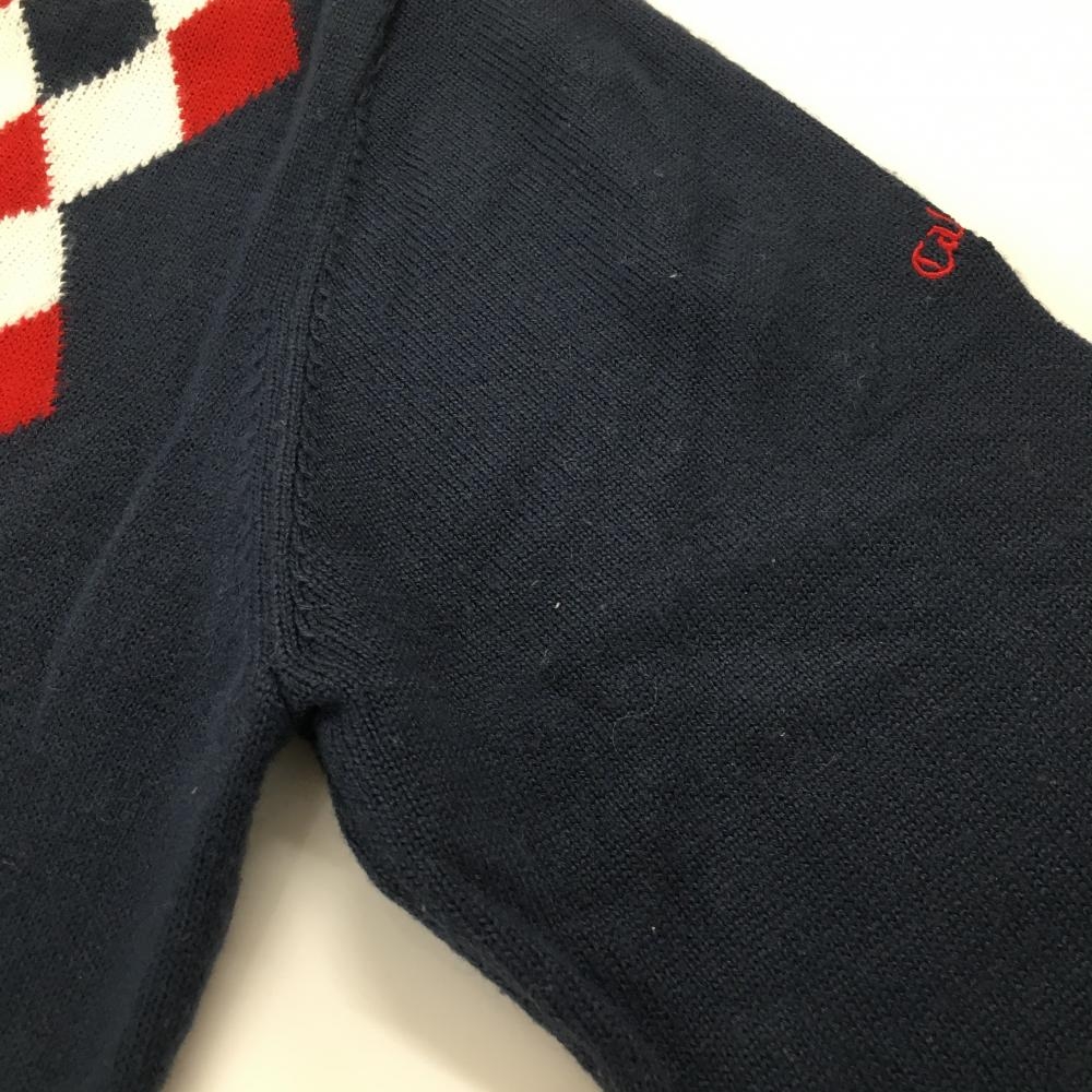 【美品】キャロウェイ セーター ネイビー×レッド×白 一部アーガイル ウール混 ニット Vネック レディース L ゴルフウェア Callaway