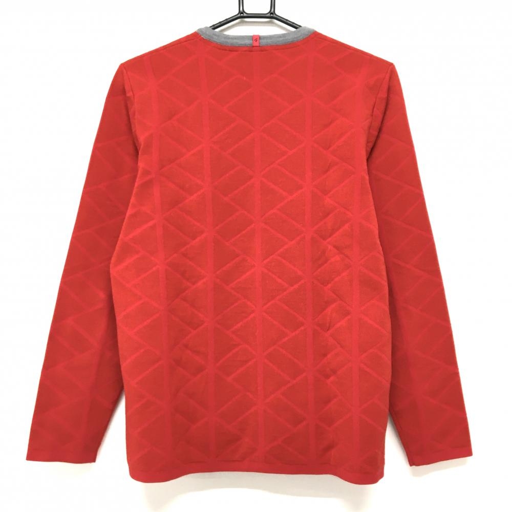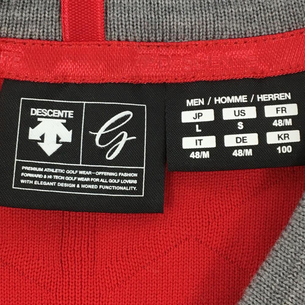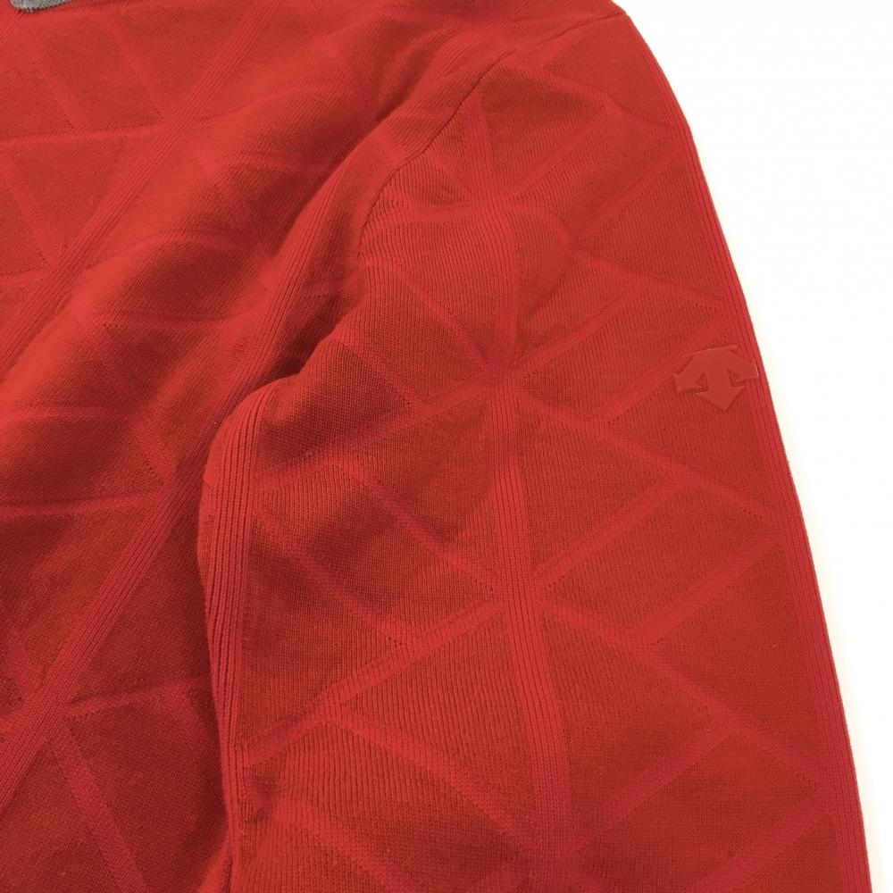 【美品】デサントゴルフ セーター レッド 総柄 ウール混 Vネック 中田英寿 メンズ L ゴルフウェア DESCENTE