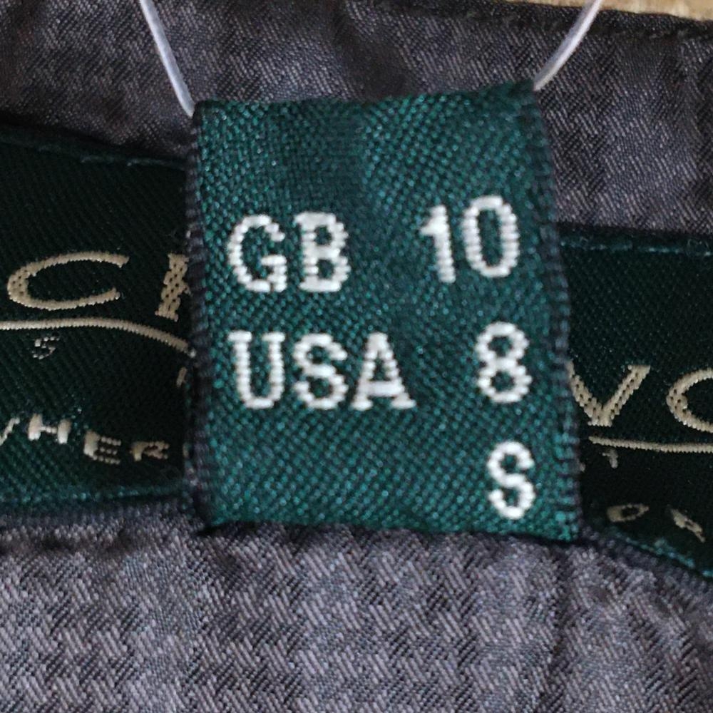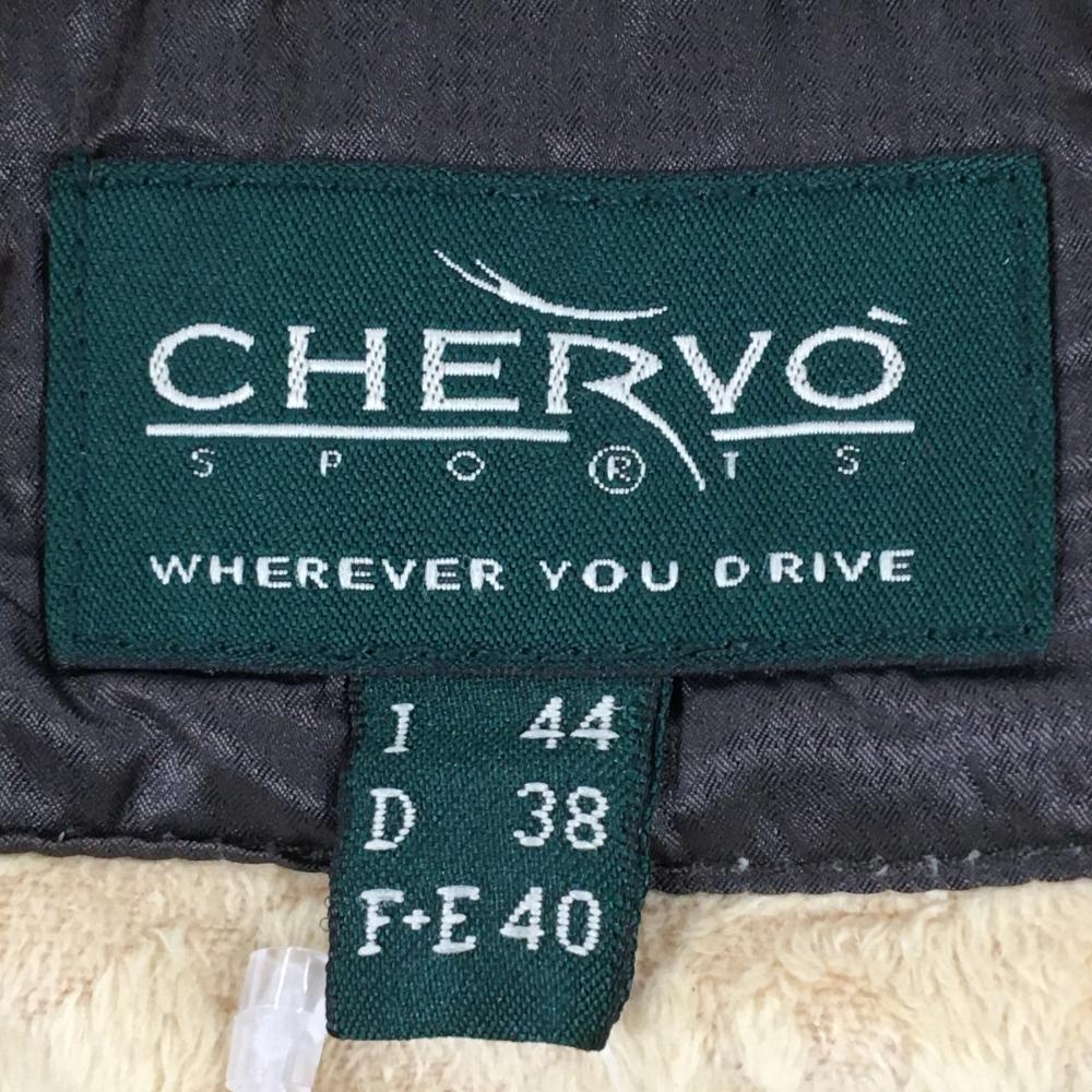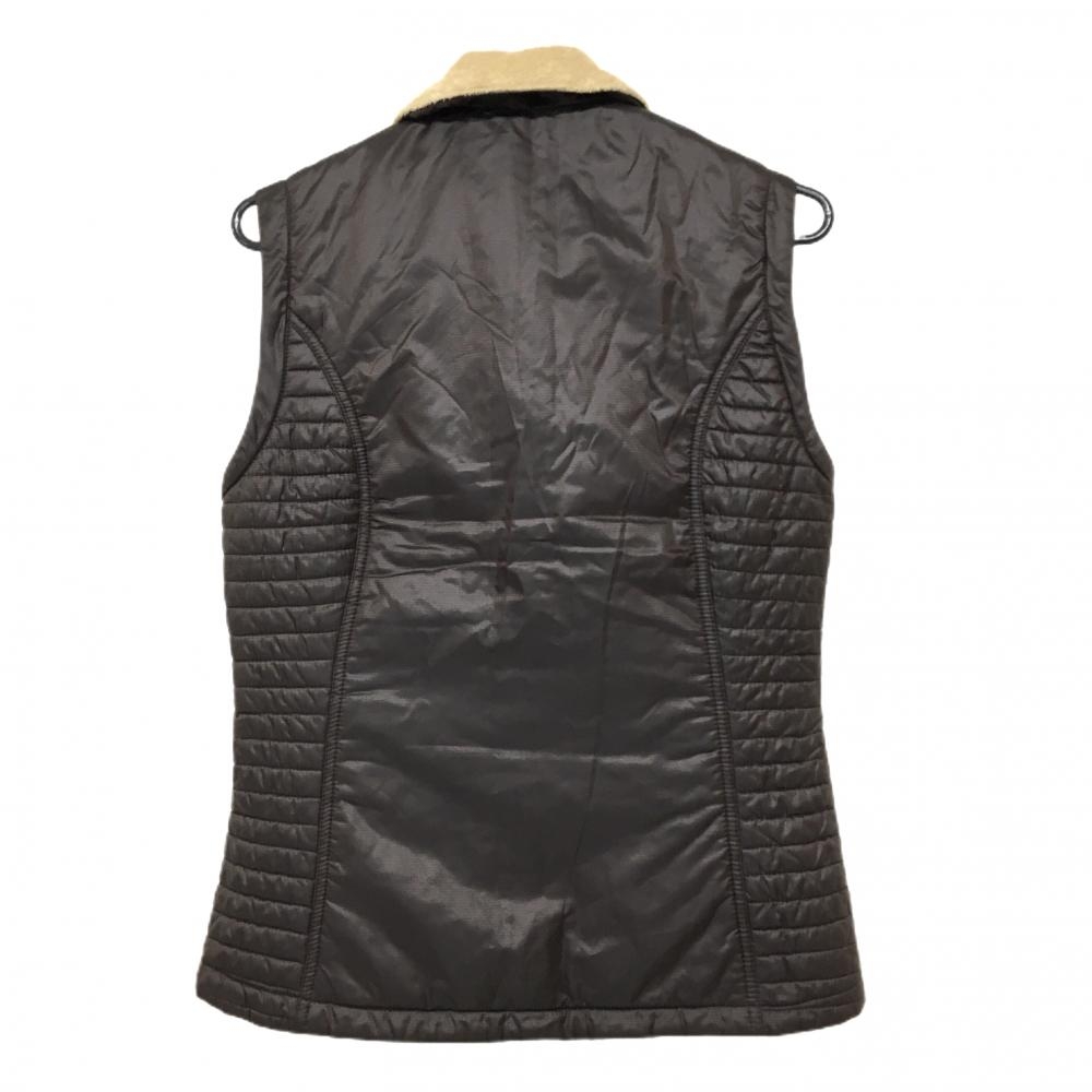 【美品】シェルボ 中綿ベスト ダークブラウン 地模様 ネック内側ボア レディース USA-S ゴルフウェア CHERVO
