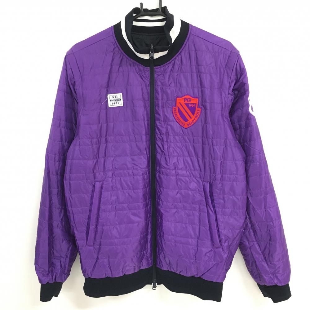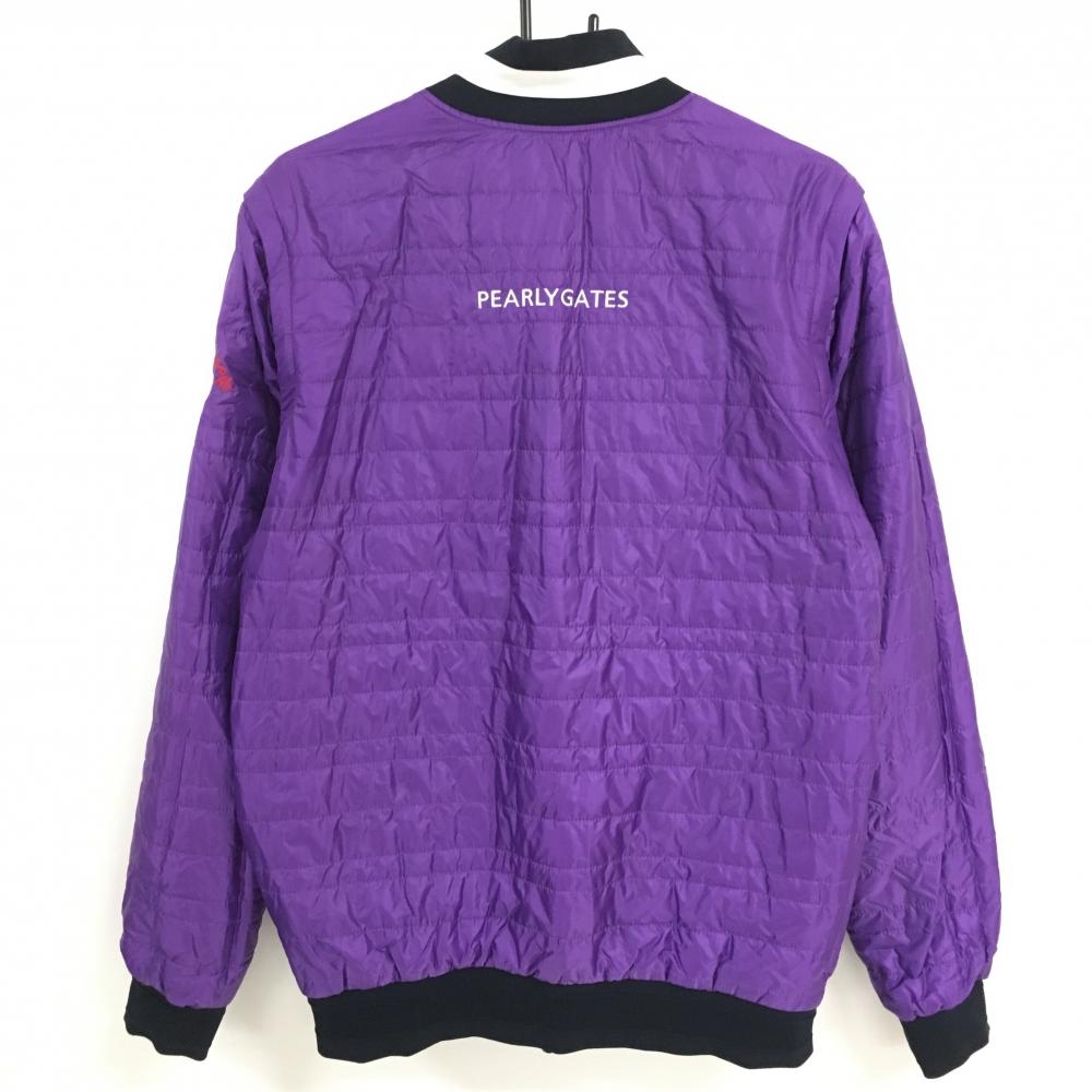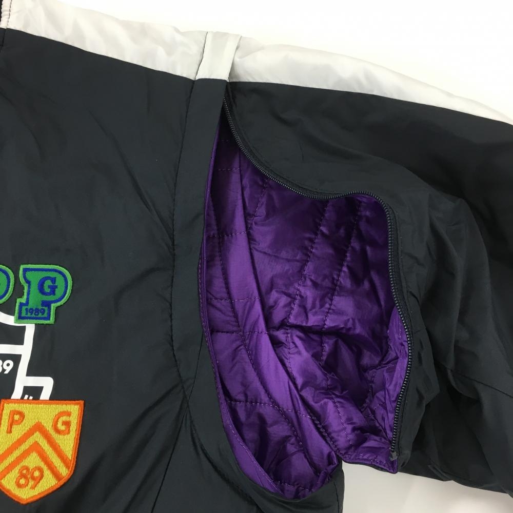 【美品】パーリーゲイツ 中綿リバーシブルジャケット 黒×白 複数ワッペン 袖着脱可 片面パープル メンズ 6(XL) ゴルフウェア PEARLY GATES