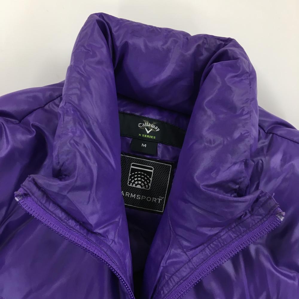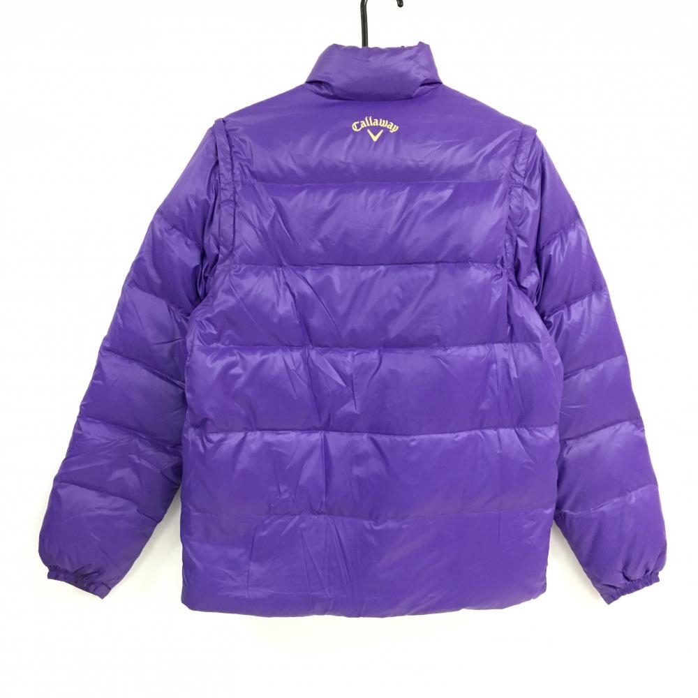 キャロウェイ 2WAYダウンジャケット パープル ロゴイエロー 袖着脱可 メンズ M ゴルフウェア Callaway