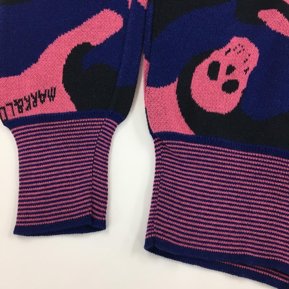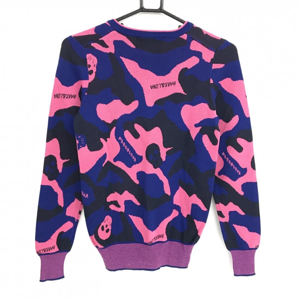 【超美品】マークアンドロナ セーター ネイビー×ピンク カモフラ スカル 迷彩 ニット コットン混 レディース S ゴルフウェア MARK&LONA