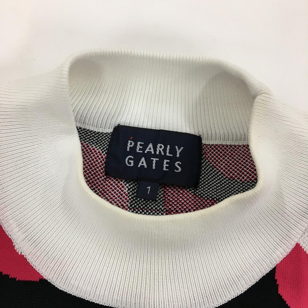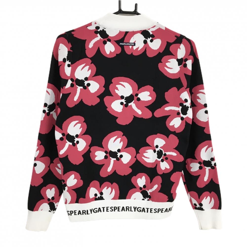 パーリーゲイツ ハイネックセーター 黒×ピンク×白 花柄 ニット レディース 1(M) ゴルフウェア PEARLY GATES