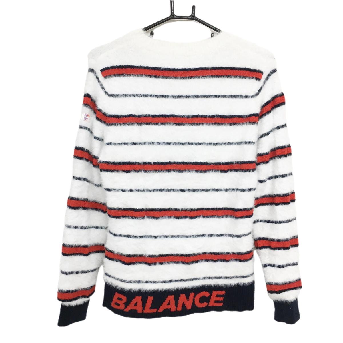 【超美品】ニューバランスゴルフ セーター 白×レッド ボーダー 裾ロゴ レディース 1(M) ゴルフウェア New Balance