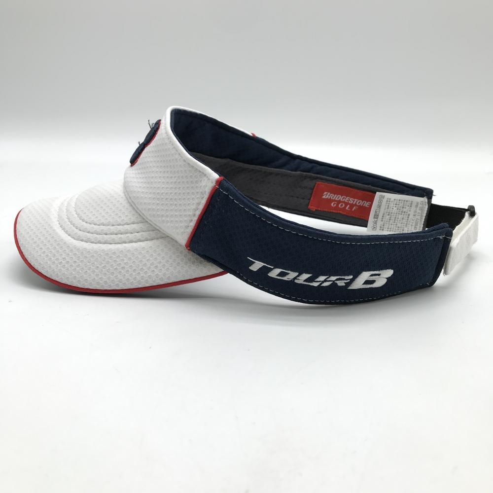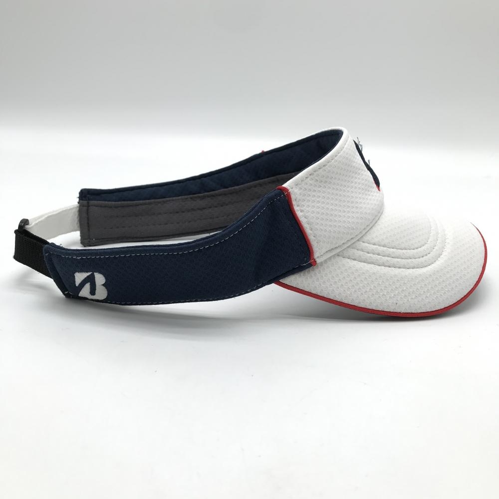 【美品】ブリヂストンゴルフ サンバイザー 白×ネイビー×レッド 立体ロゴ フリーサイズ(約56-59cm) ゴルフウェア Bridgestone