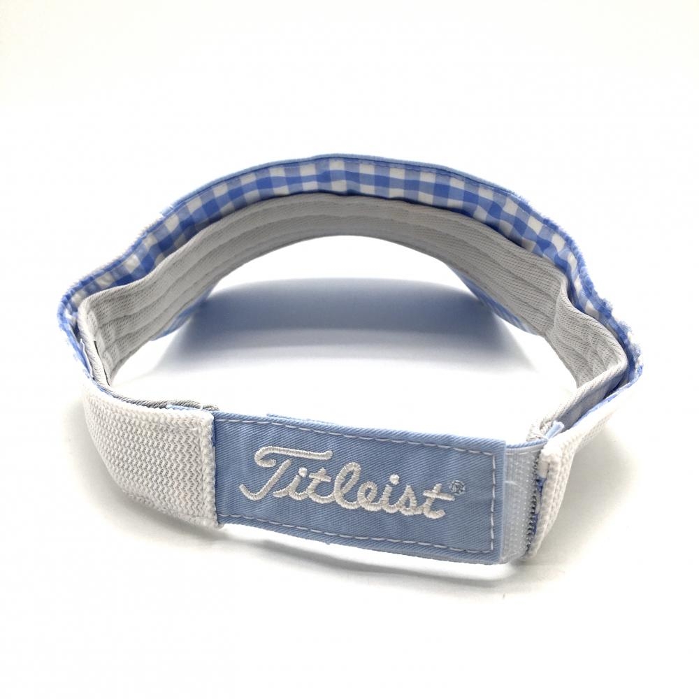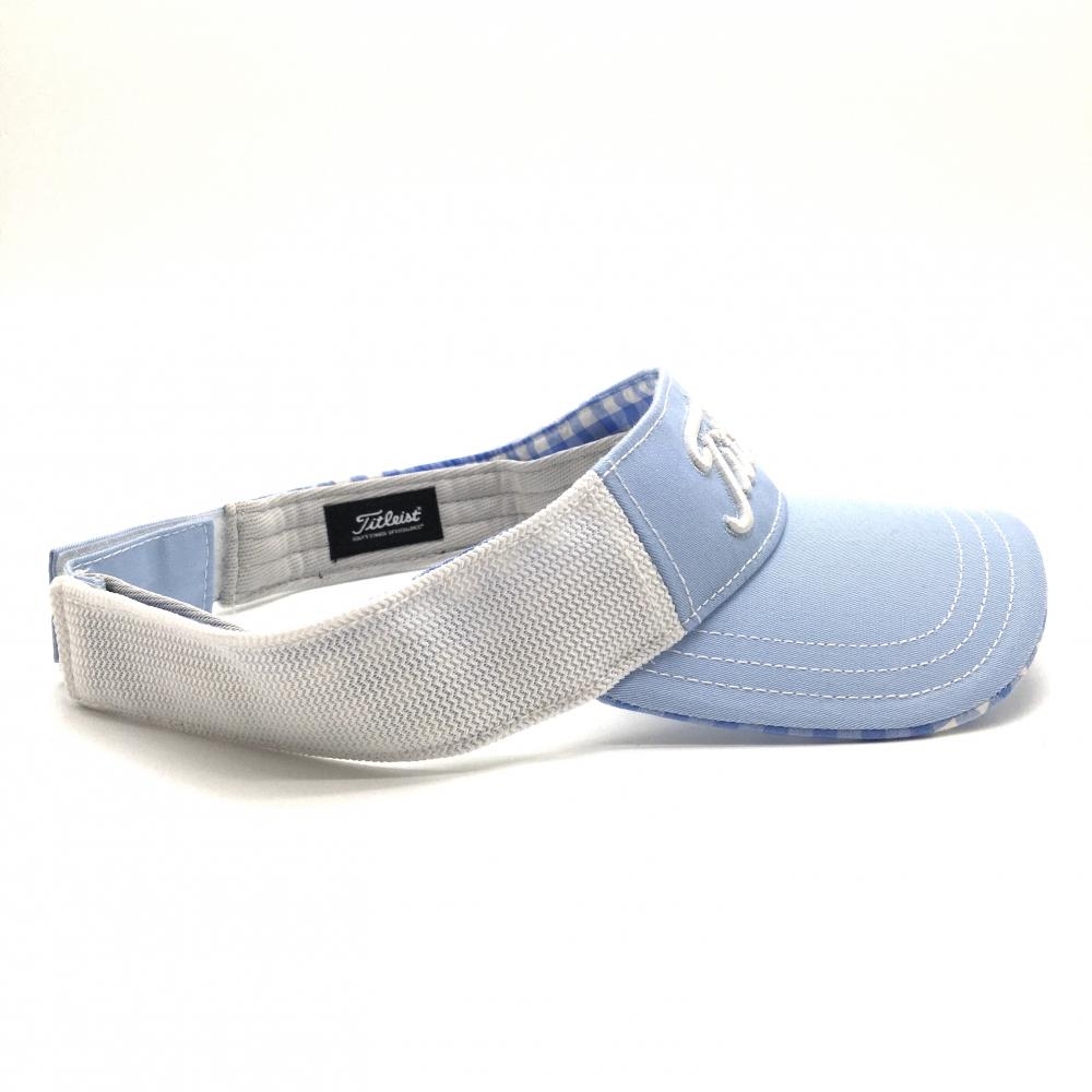 タイトリスト サンバイザー ライトブルー×白 立体ロゴ刺しゅう つば裏チェック ゴルフウェア TITLEIST