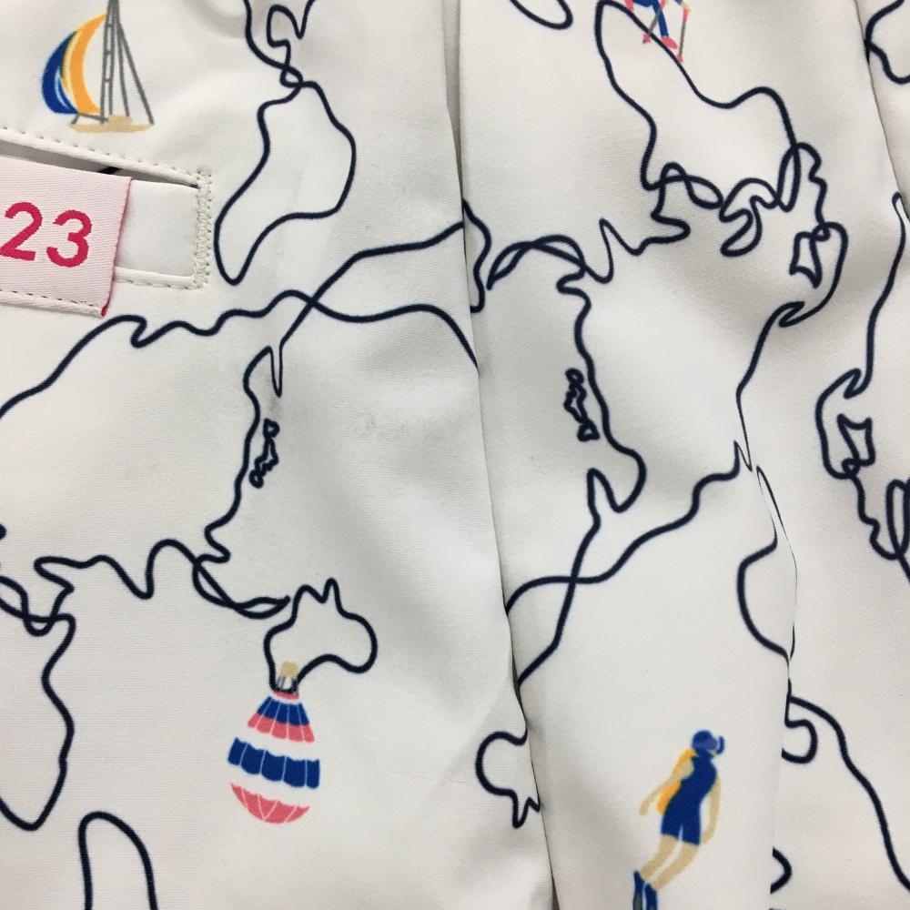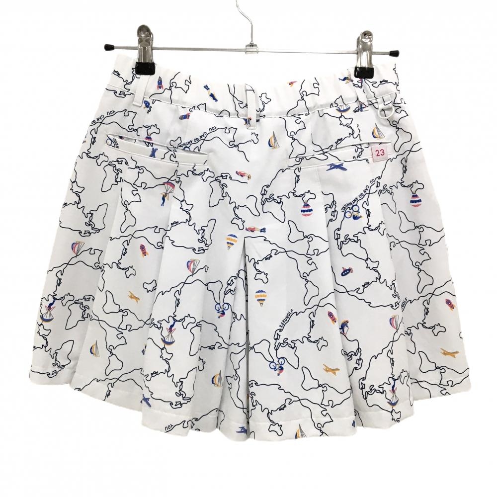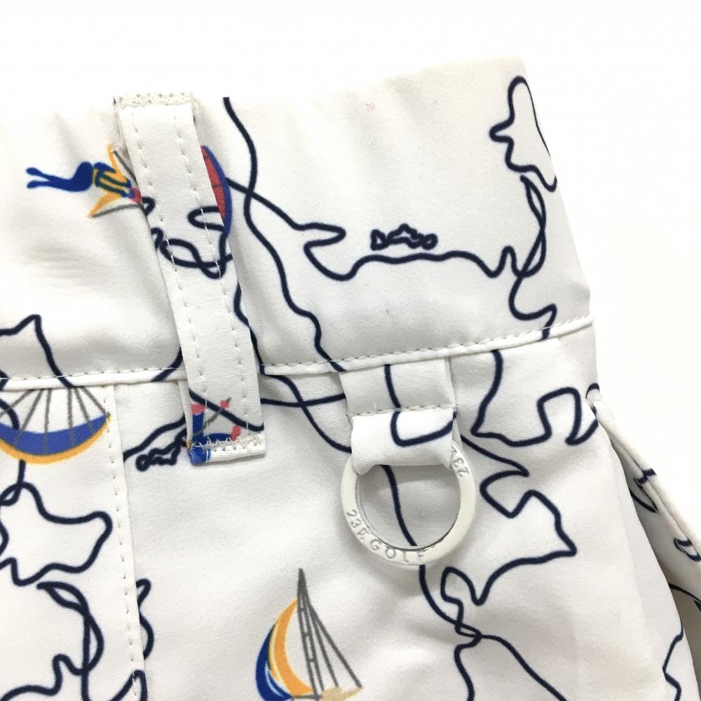 【美品】23区ゴルフ キュロットスカート 白×ネイビー 総柄 乗り物 プリーツ 裏地付 レディース I(M) ゴルフウェア 23区