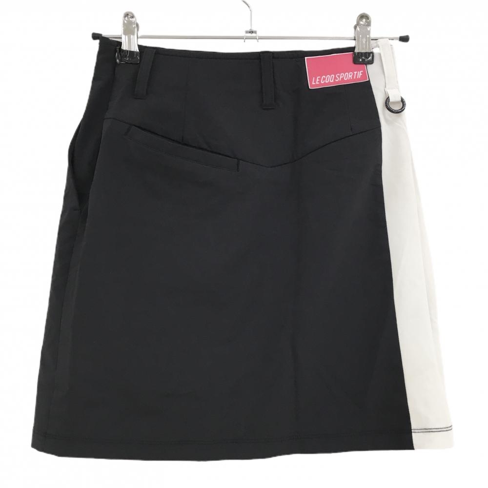 【超美品】ルコックゴルフ ナイロンスカート 黒×白 ストレッチ 後ろウエスト内側ゴム レディース 7 ゴルフウェア le coq sportif