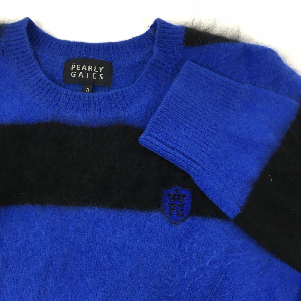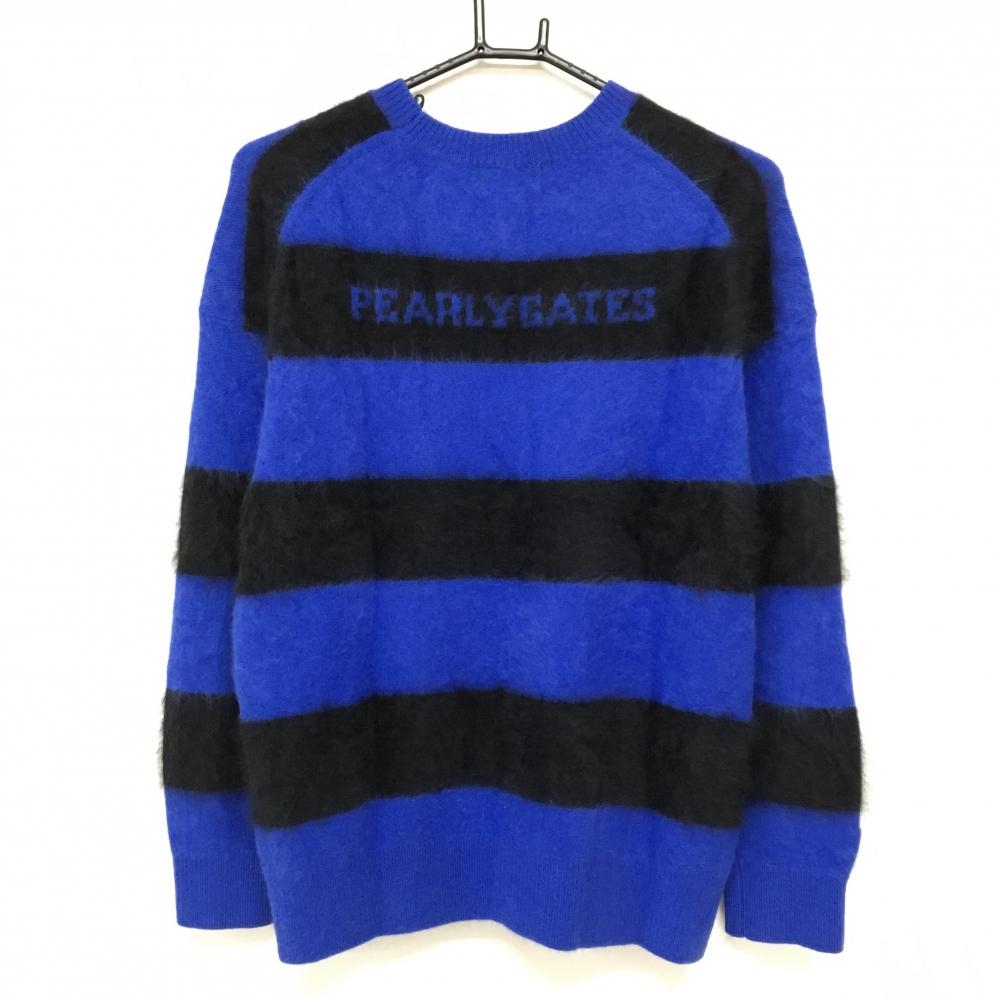 パーリーゲイツ セーター ブルー×黒 ボーダー ウール混 ニット レディース 0(S) ゴルフウェア PEARLY GATES